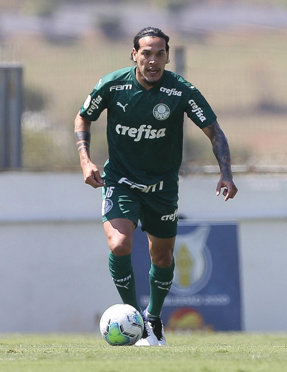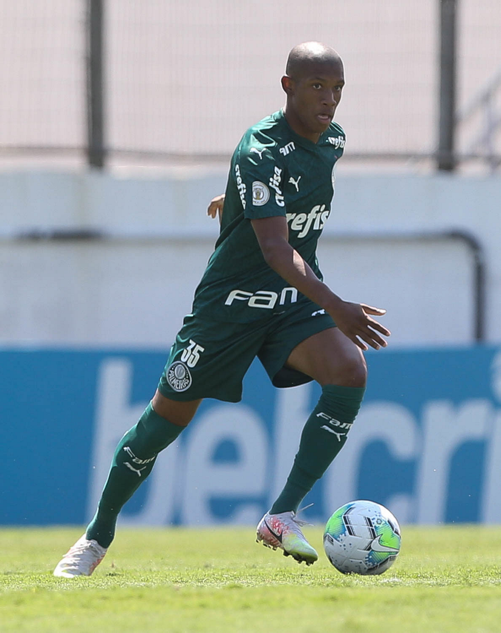O jogador Gabriel Menino, da SE Palmeiras, em jogo contra a equipe do Red Bull Bragantino, durante partida válida pela oitava rodada, do Campeonato Brasileiro, Série A, no Estádio Nabi Abi Chedid. (Foto: Cesar Greco)