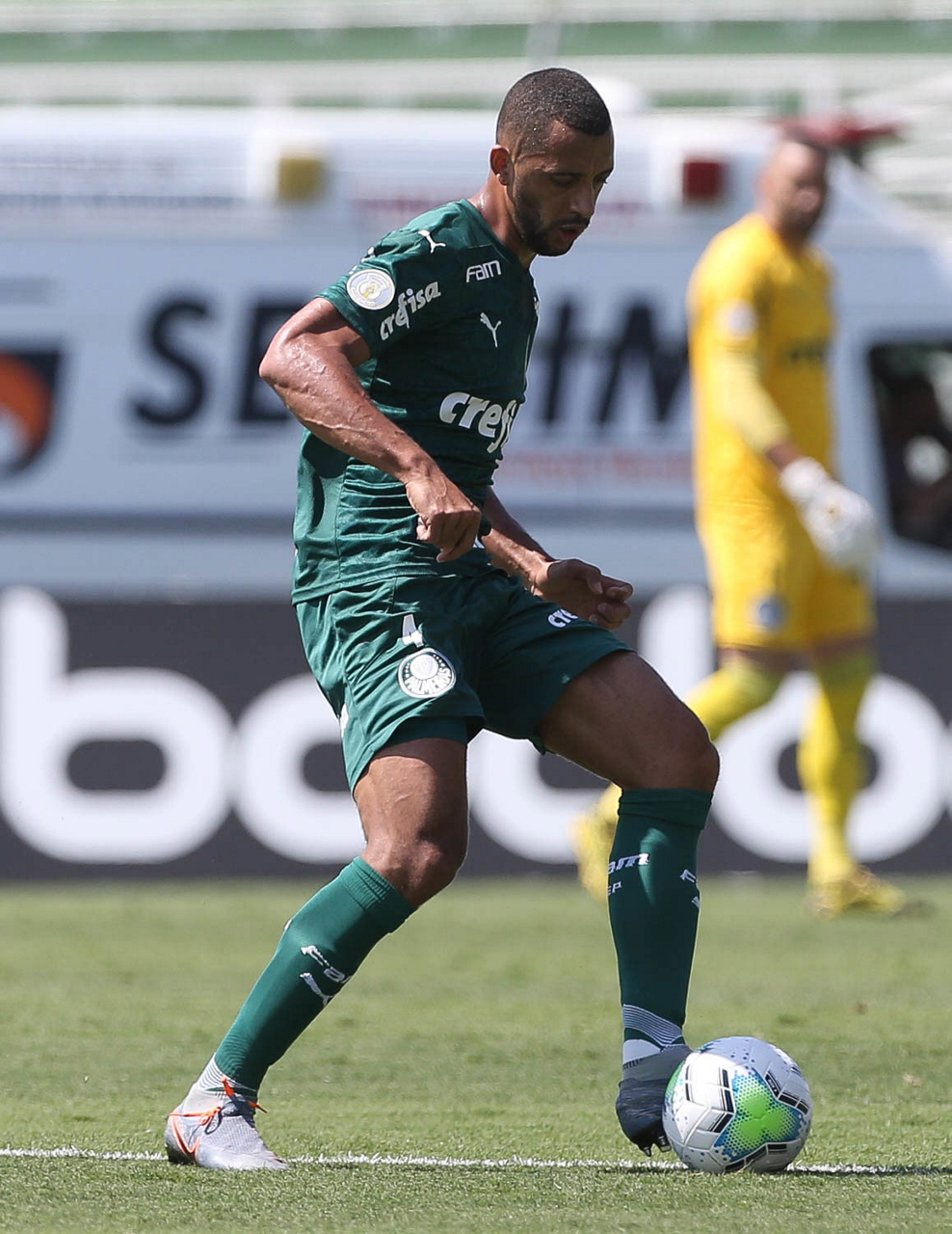 O jogador Mayke, da SE Palmeiras, em jogo contra a equipe do Red Bull Bragantino, durante partida válida pela oitava rodada, do Campeonato Brasileiro, Série A, no Estádio Nabi Abi Chedid. (Foto: Cesar Greco)