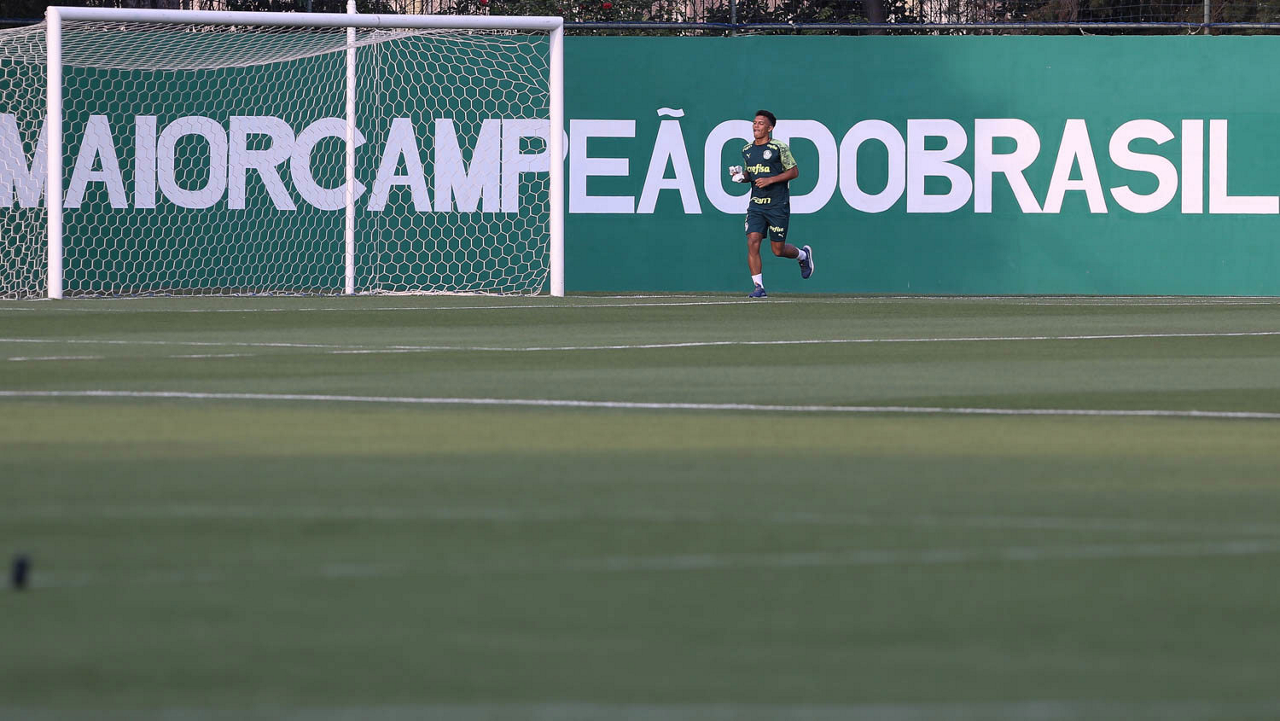 O goleiro Vinicius, da SE Palmeiras, durante treinamento, na Academia de Futebol. (Foto: Cesar Greco)