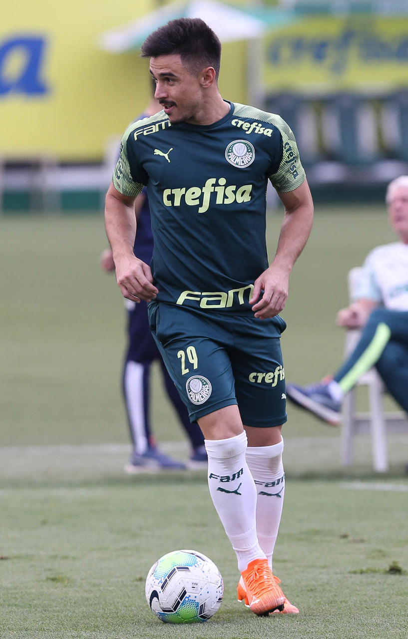 O jogador Raphael Veiga, da SE Palmeiras, durante treinamento, na Academia de Futebol. (Foto: Cesar Greco)