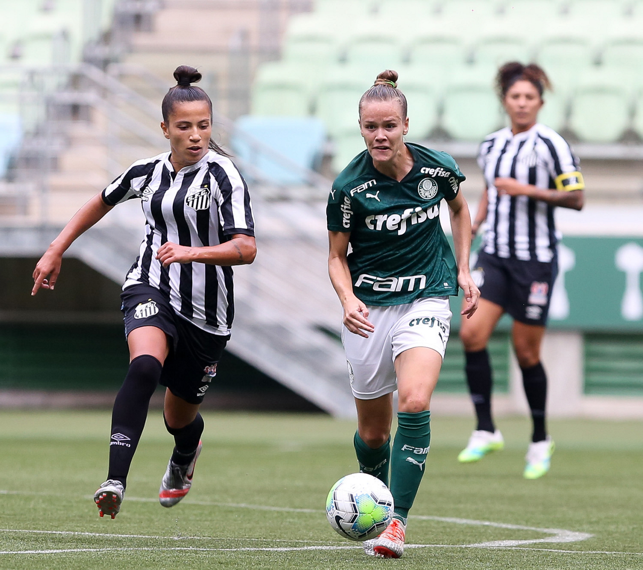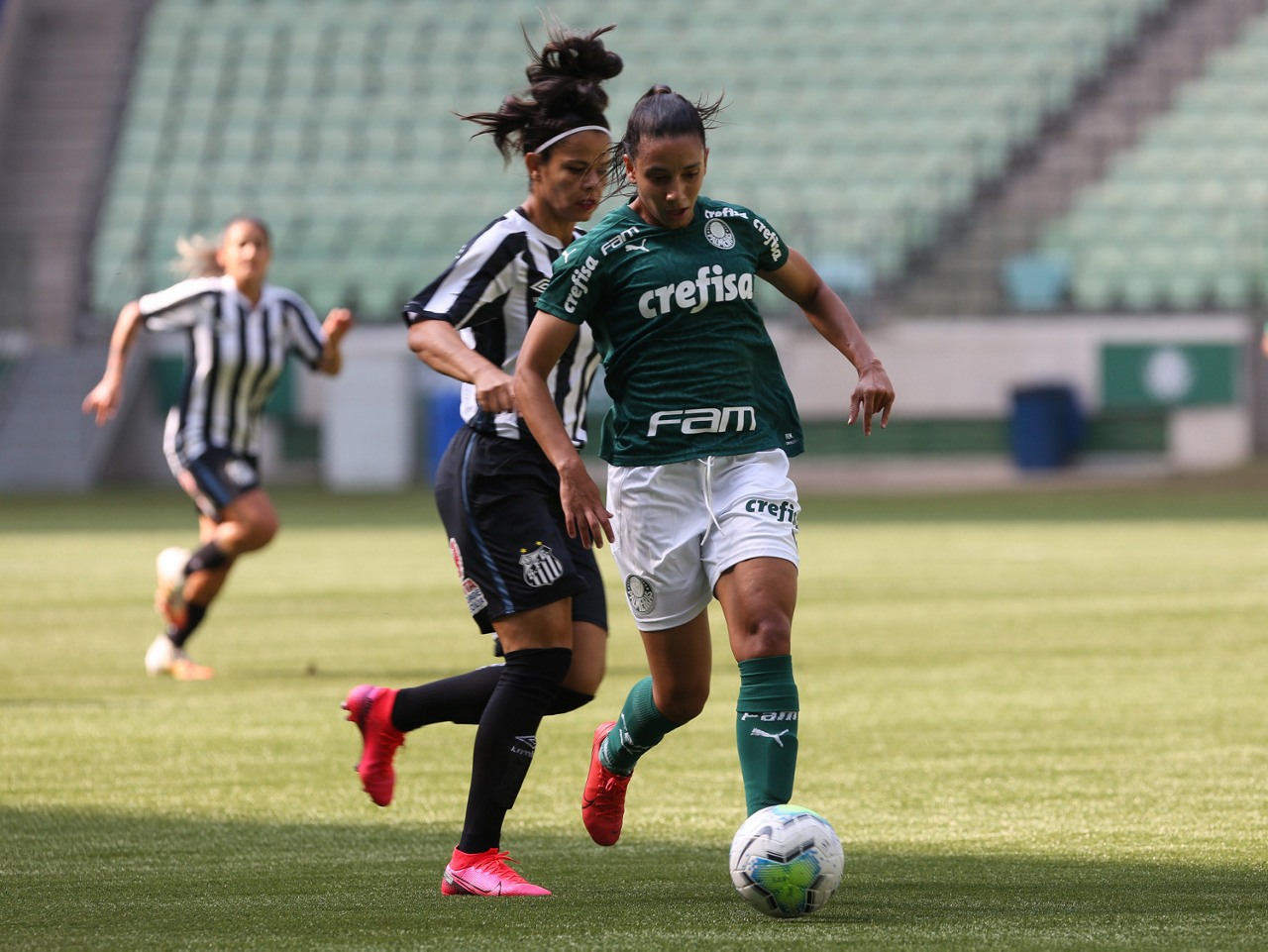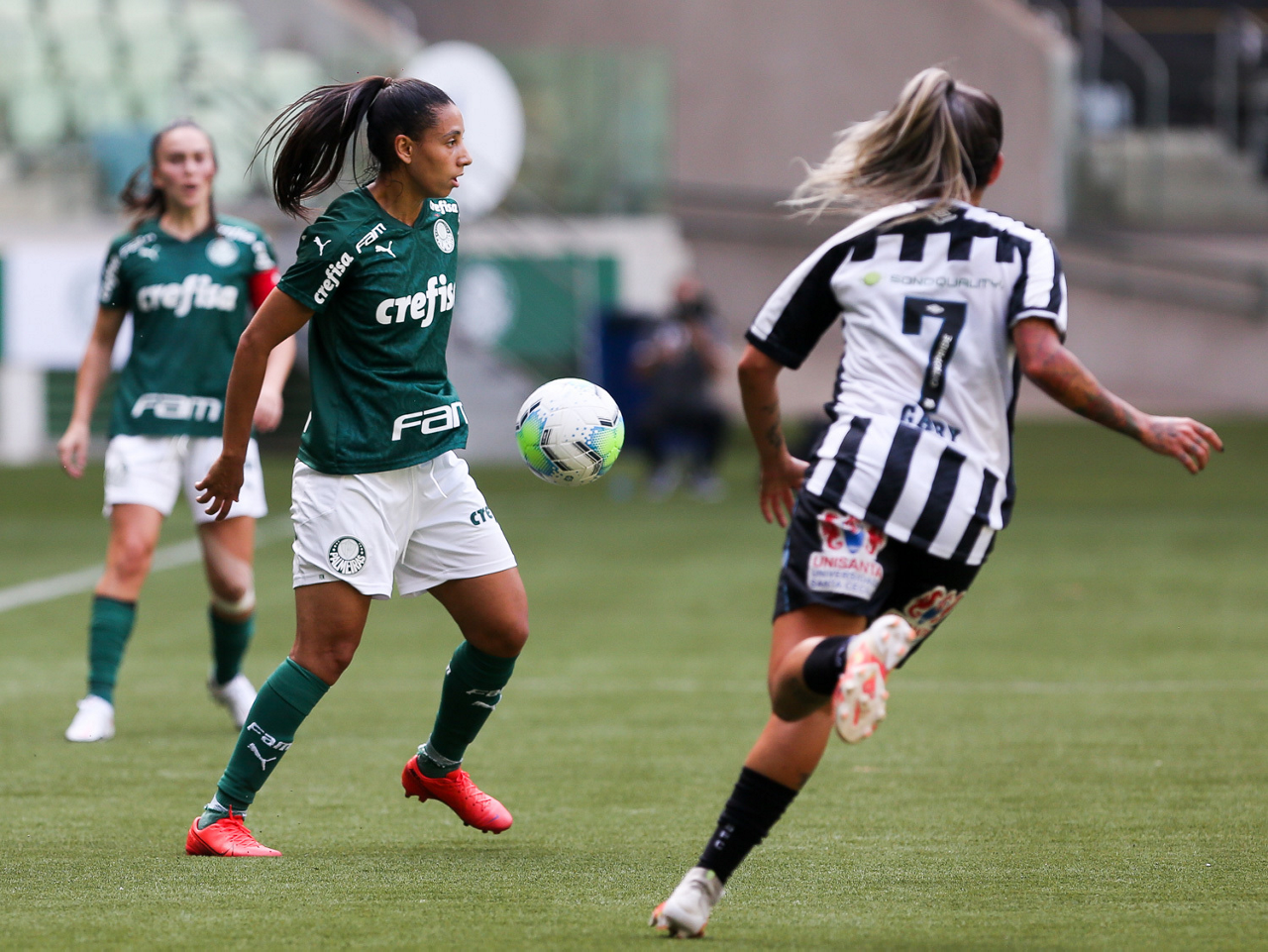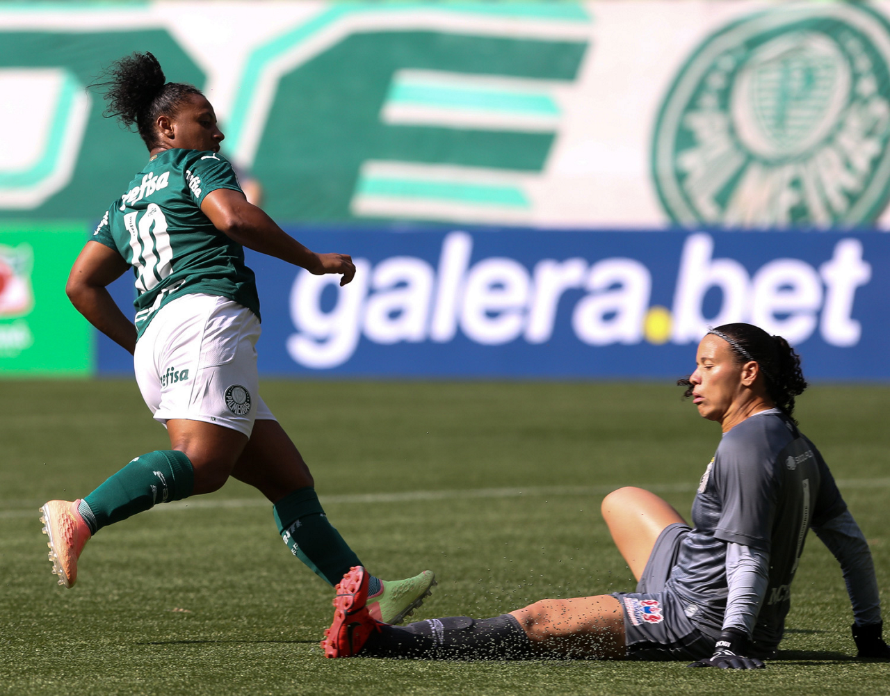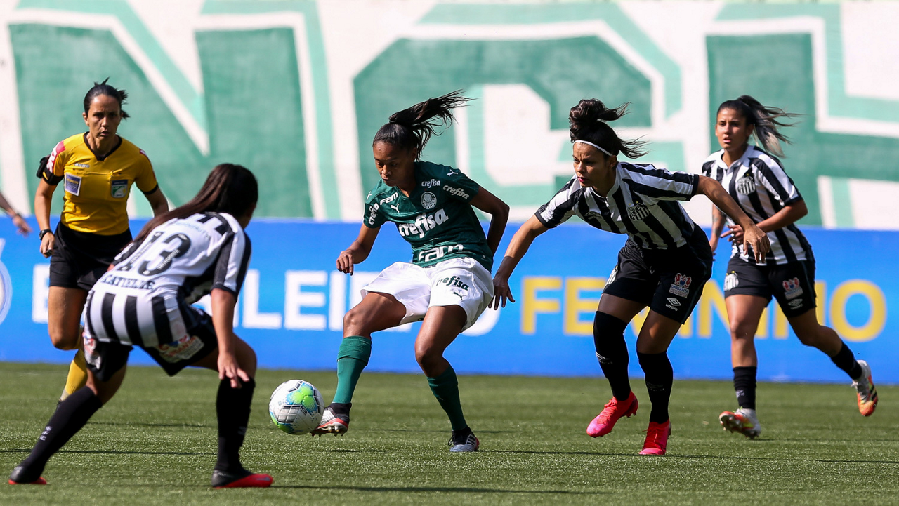 Partida entre Palmeiras e Santos, válida pela 10ª rodada do Campeonato Brasileiro Feminino, no Allianz Parque, em São Paulo-SP. (Foto: Fabio Menotti)