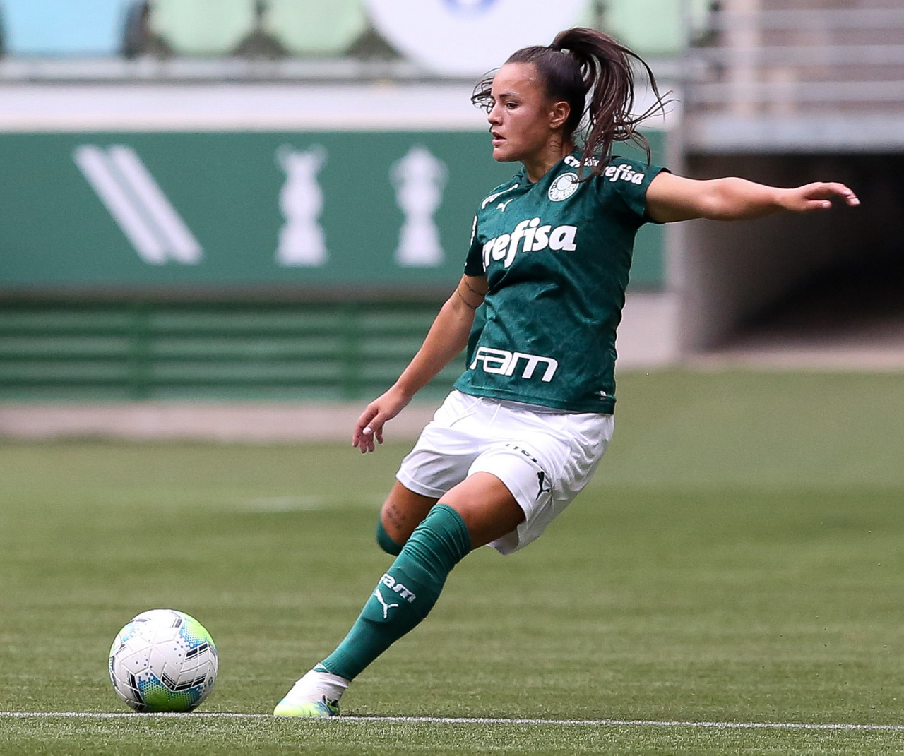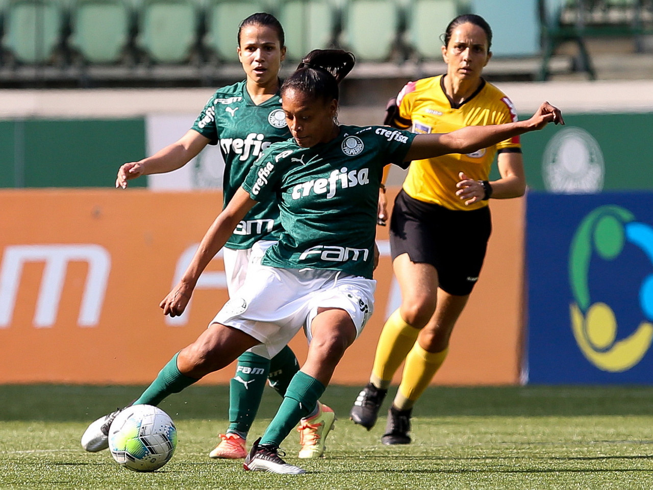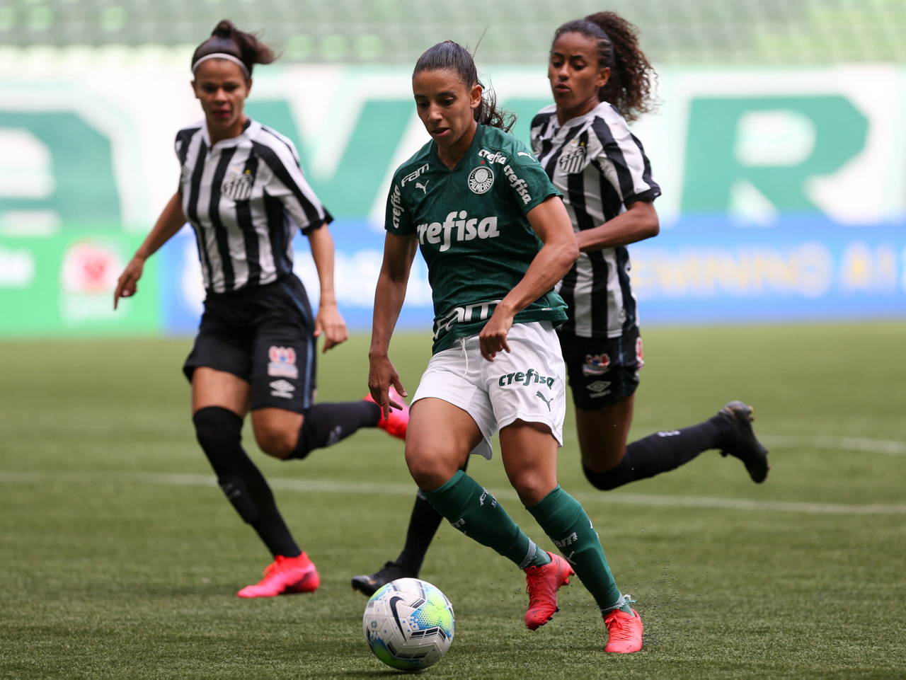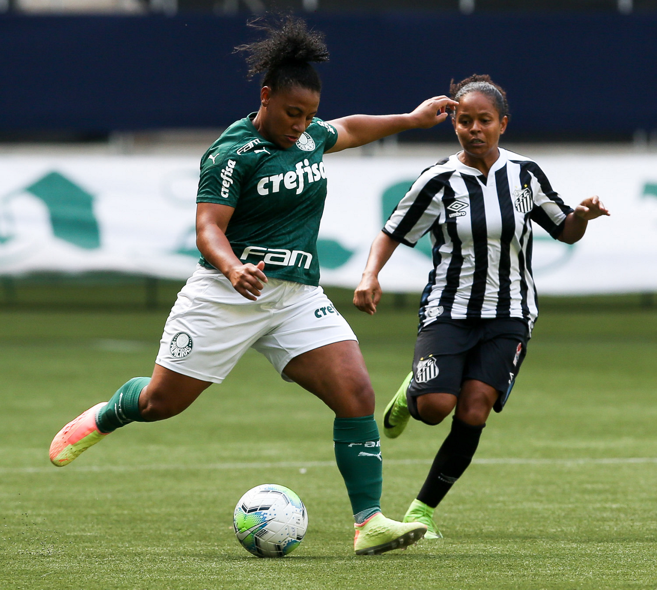 Partida entre Palmeiras e Santos, válida pela 10ª rodada do Campeonato Brasileiro Feminino, no Allianz Parque, em São Paulo-SP. (Foto: Fabio Menotti)
