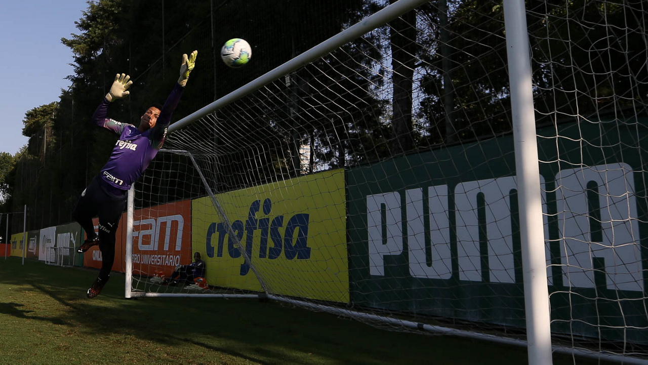 O goleiro Matheus, da SE Palmeiras, durante treinamento, na Academia de Futebol. (Foto: Cesar Greco)