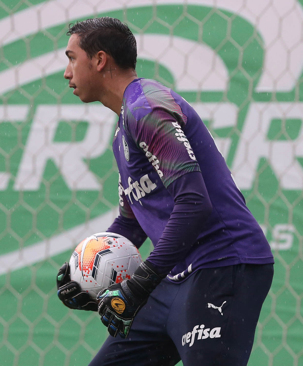O goleiro Vinicius, da SE Palmeiras, durante treinamento, na Academia de Futebol. (Foto: Cesar Greco)