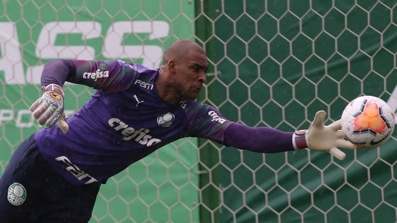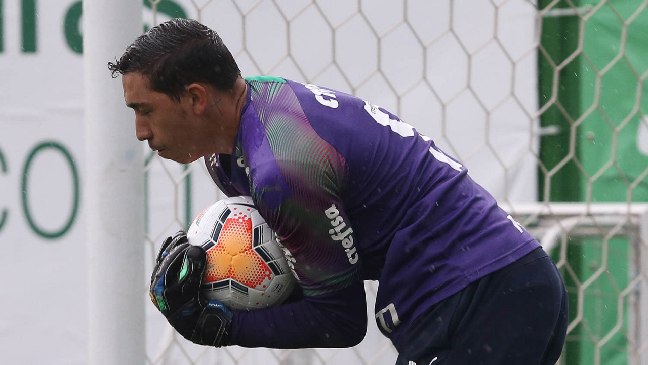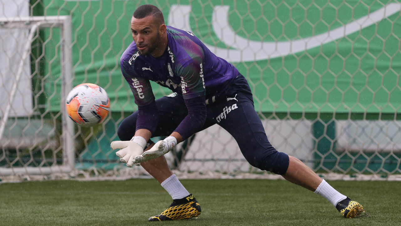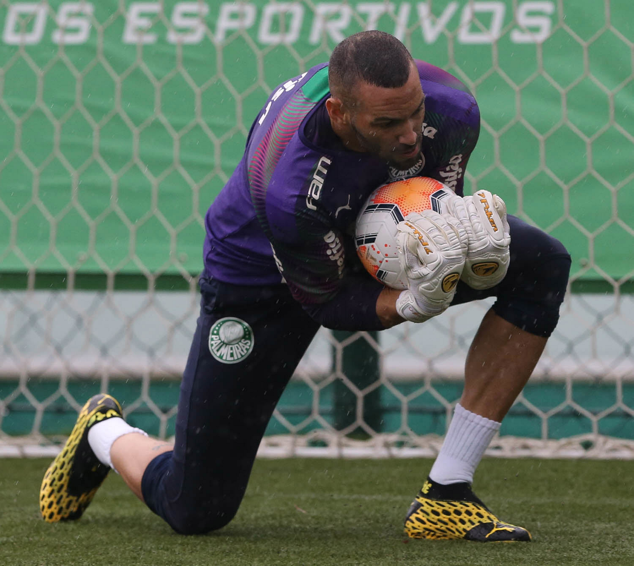 O goleiro Weverton, da SE Palmeiras, durante treinamento, na Academia de Futebol. (Foto: Cesar Greco)