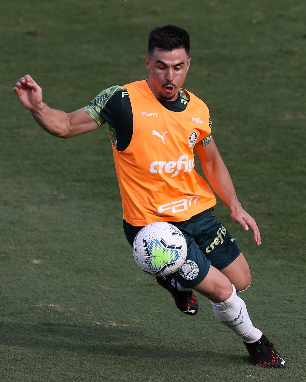O jogador Gustavo Scarpa, da SE Palmeiras, durante treinamento, na Academia de Futebol. (Foto: Cesar Greco)