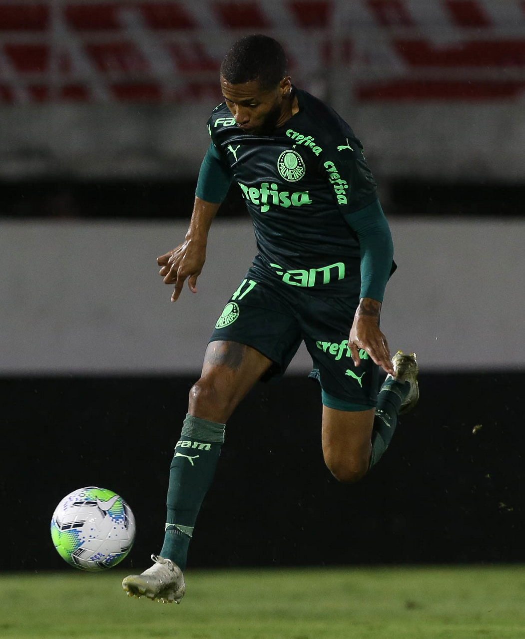 O jogador Wesley, da SE Palmeiras, em jogo contra a equipe do Red Bull Bragantino, durante partida válida pelas oitavas de final (ida), da Copa do Brasil, no estádio Nabi Abi Chedid . (Foto: Cesar Greco)