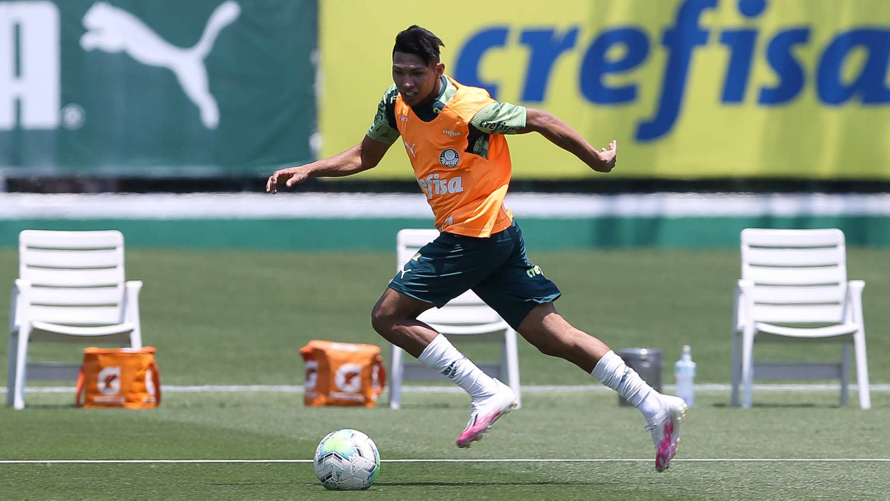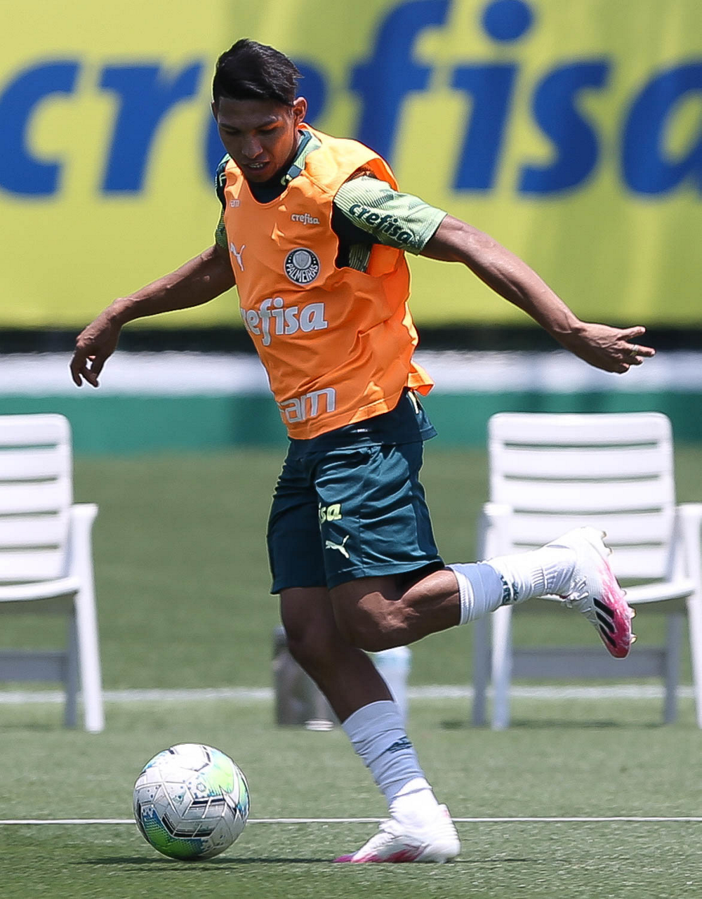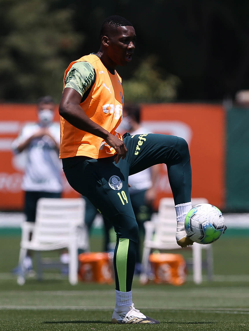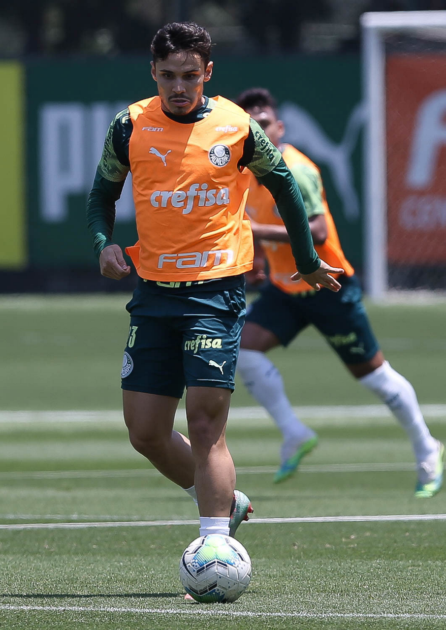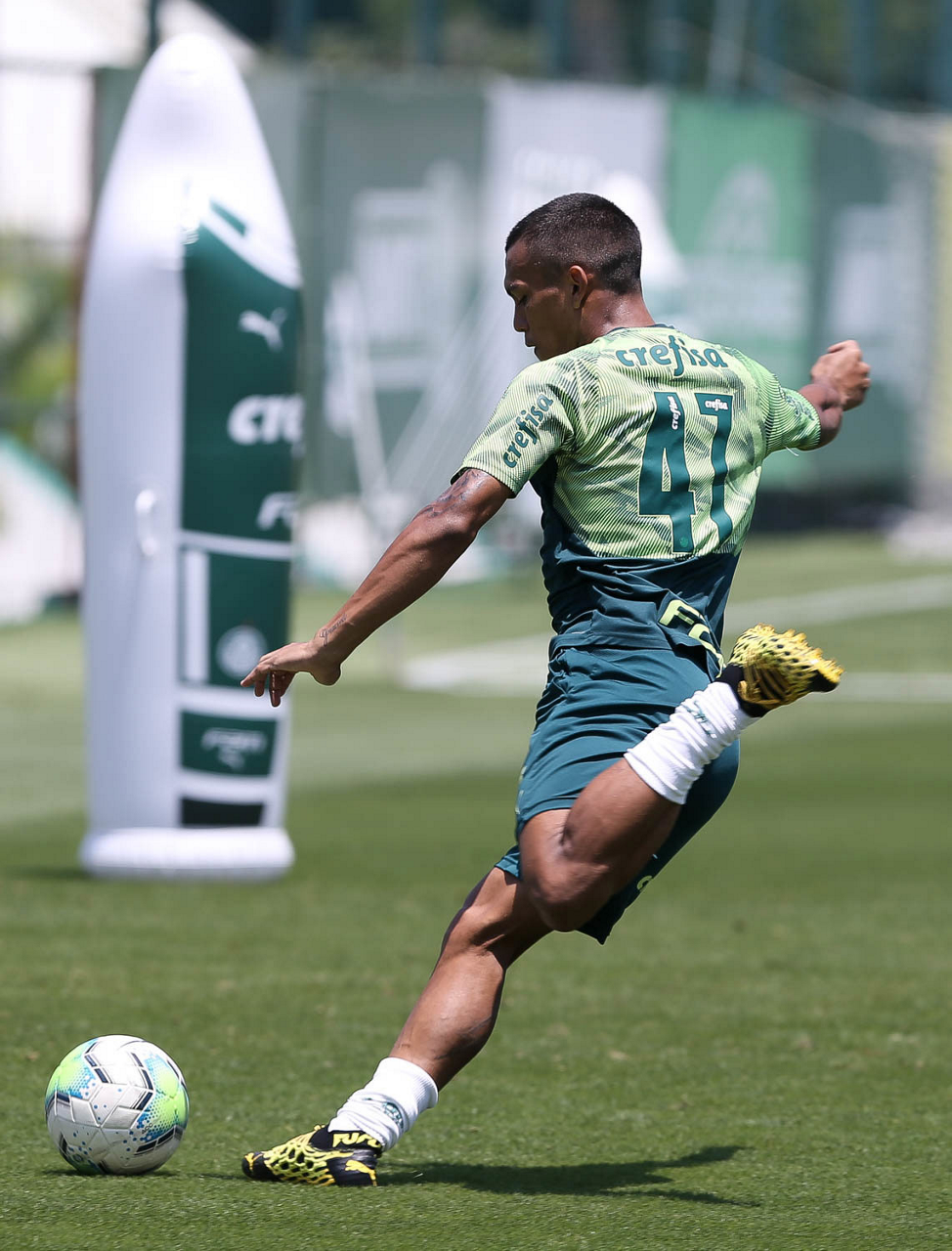 O jogador Raphael Veiga, da SE Palmeiras, durante treinamento, na Academia de Futebol. (Foto: Cesar Greco)