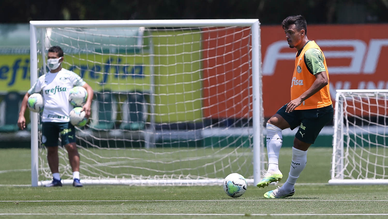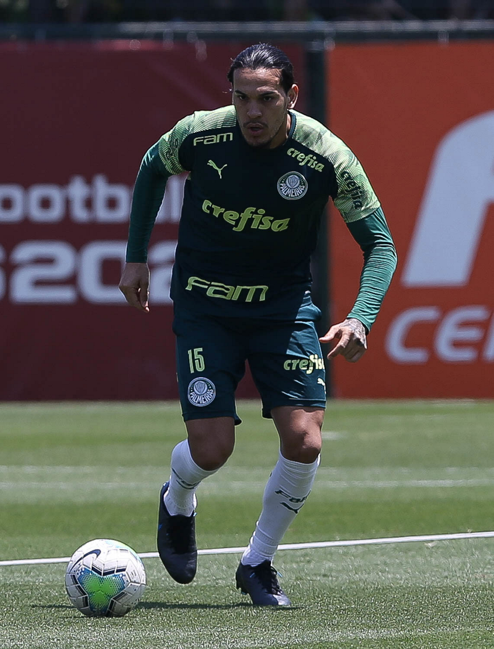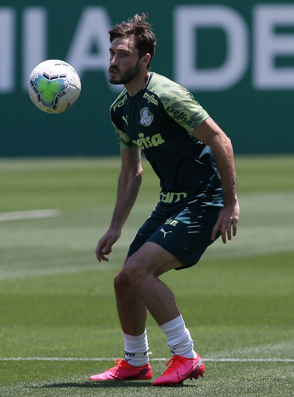 O jogador Gustavo Gómez, da SE Palmeiras, durante treinamento, na Academia de Futebol. (Foto: Cesar Greco)
