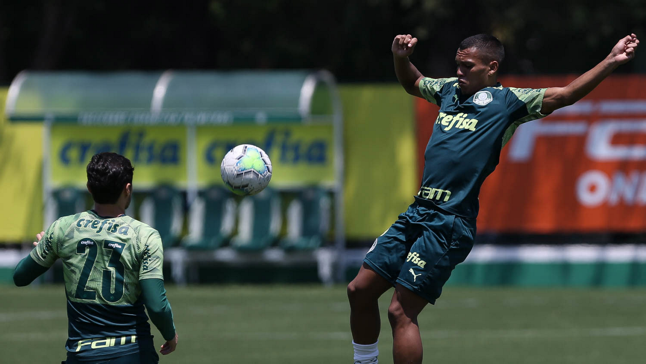 O jogador Gabriel Menino, da SE Palmeiras, durante treinamento, na Academia de Futebol. (Foto: Cesar Greco)