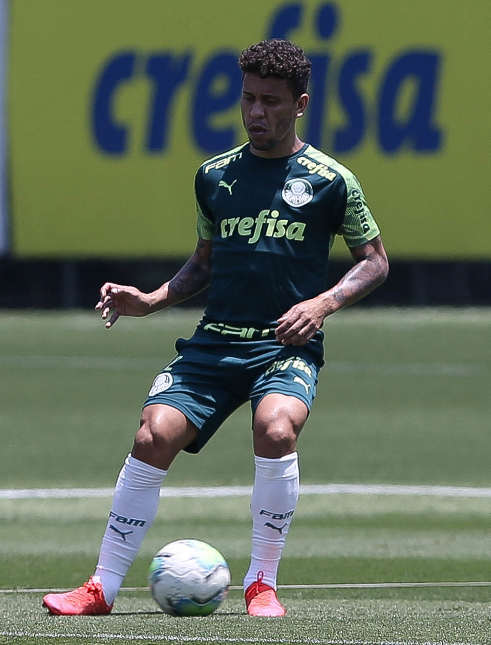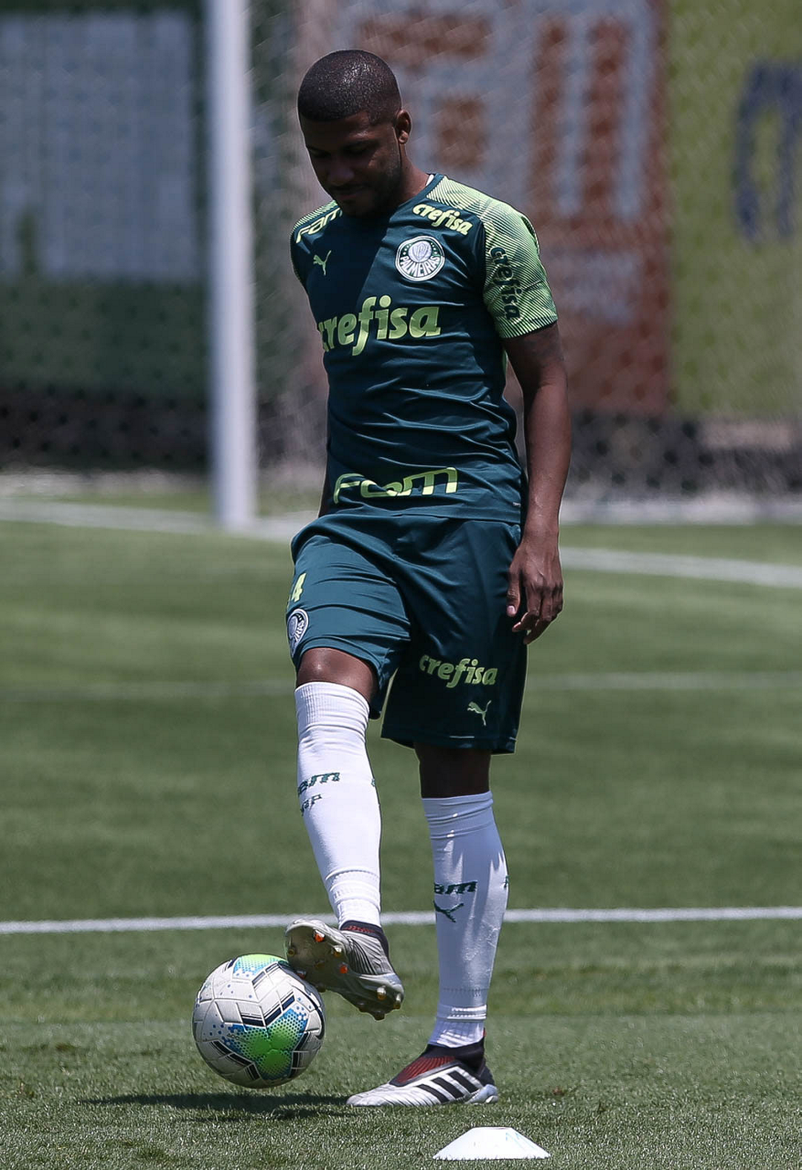 O jogador Emerson Santos, da SE Palmeiras, durante treinamento, na Academia de Futebol. (Foto: Cesar Greco)