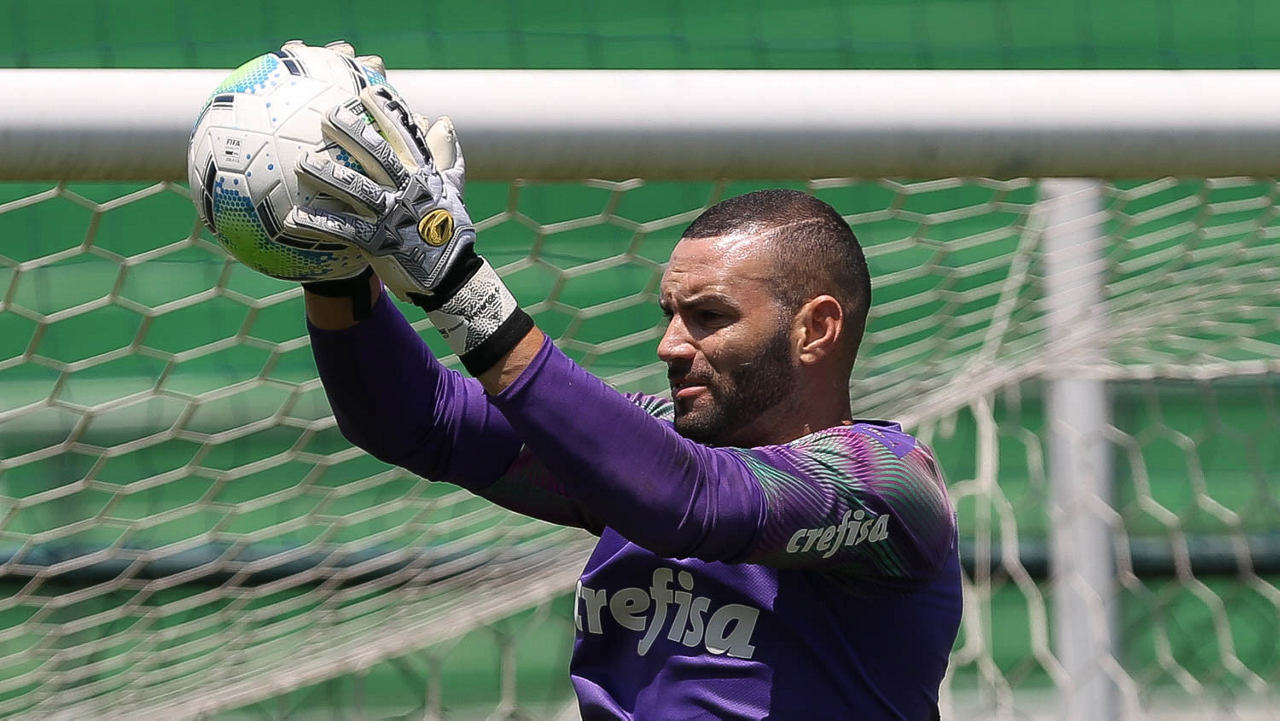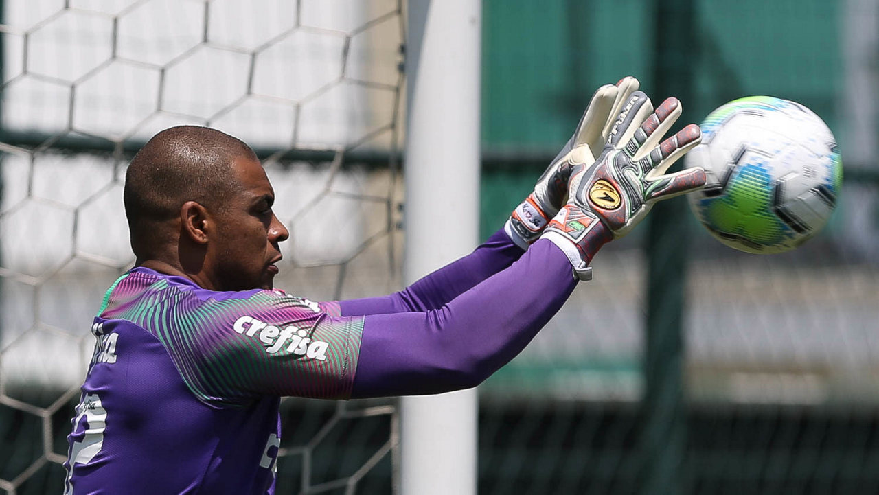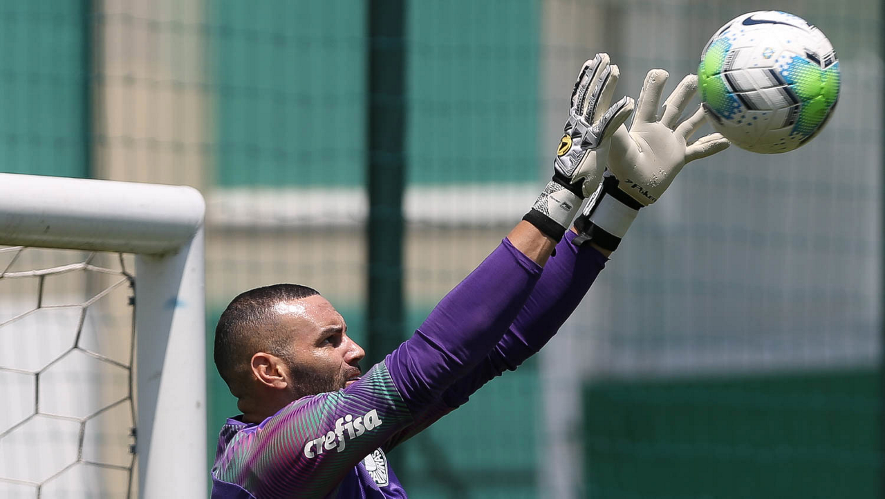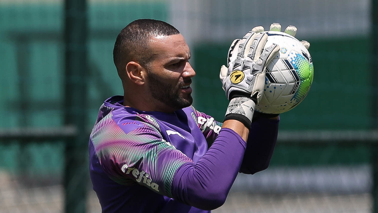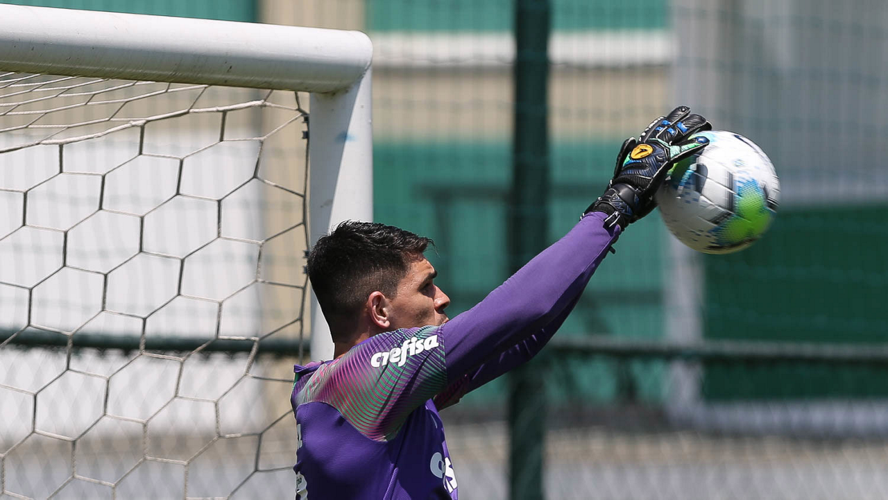 O goleiro Weverton, da SE Palmeiras, durante treinamento, na Academia de Futebol. (Foto: Cesar Greco)
