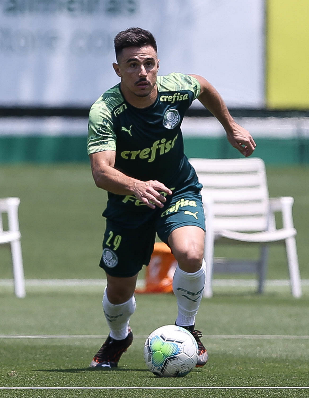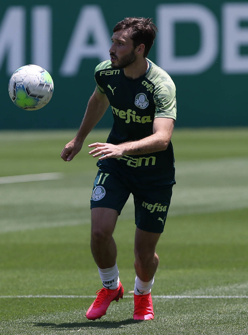 O jogador Gustavo Scarpa, da SE Palmeiras, durante treinamento, na Academia de Futebol. (Foto: Cesar Greco)