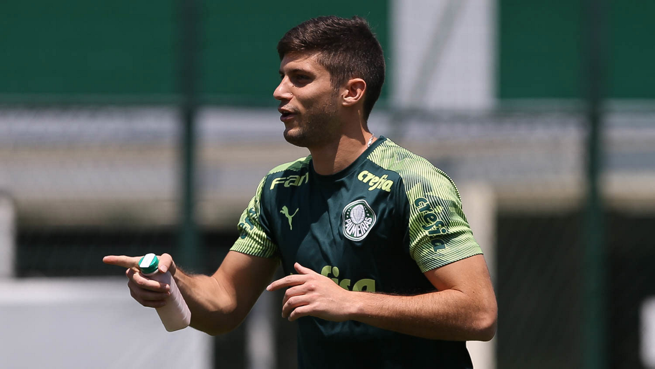 O jogador Benjamín Kuscevic, da SE Palmeiras, durante treinamento, na Academia de Futebol. (Foto: Cesar Greco)