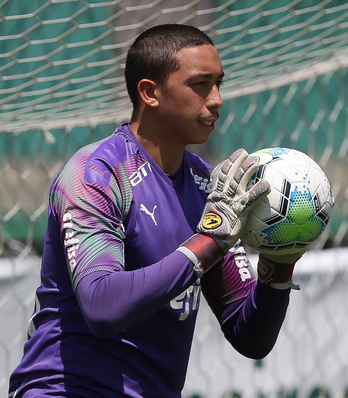 O goleiro Vinicius, da SE Palmeiras, durante treinamento, na Academia de Futebol. (Foto: Cesar Greco)