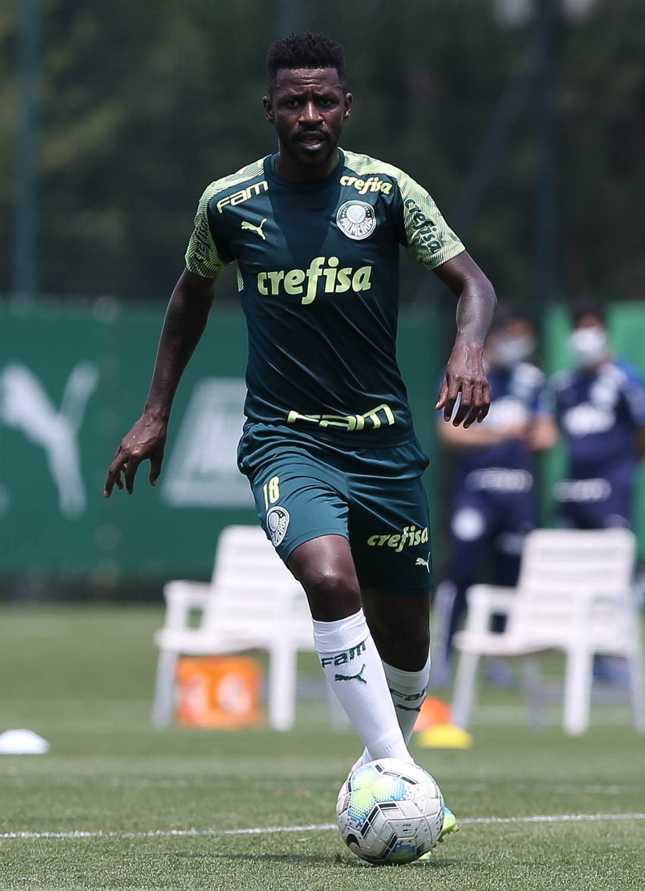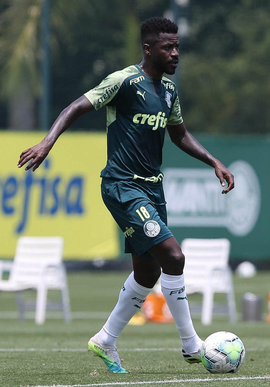 O jogador Emerson Santos, da SE Palmeiras, durante treinamento, na Academia de Futebol. (Foto: Cesar Greco)
