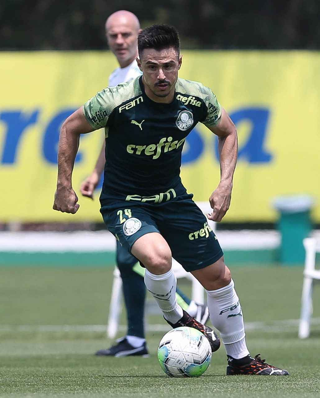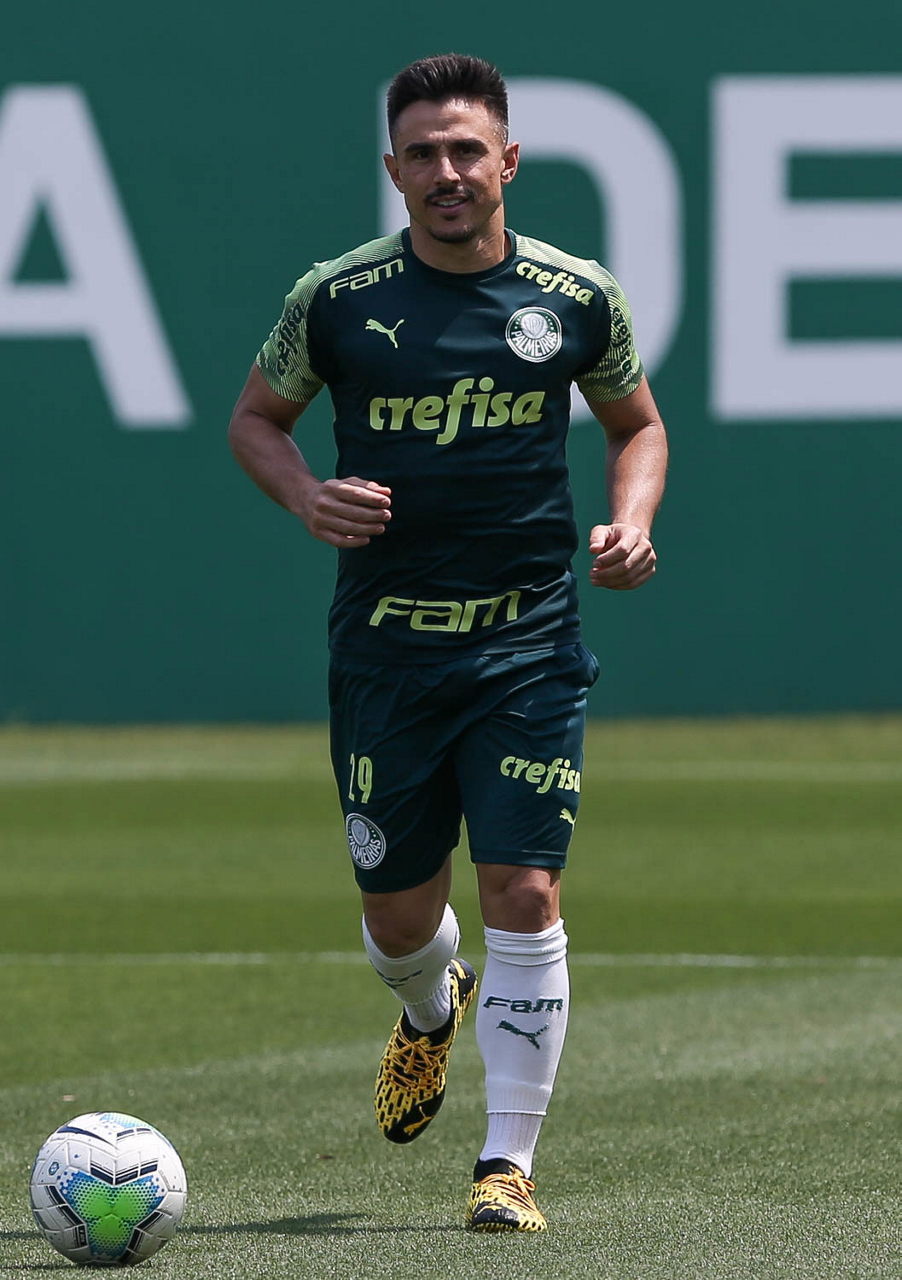 O jogador Gustavo Scarpa, da SE Palmeiras, durante treinamento, na Academia de Futebol. (Foto: Cesar Greco)