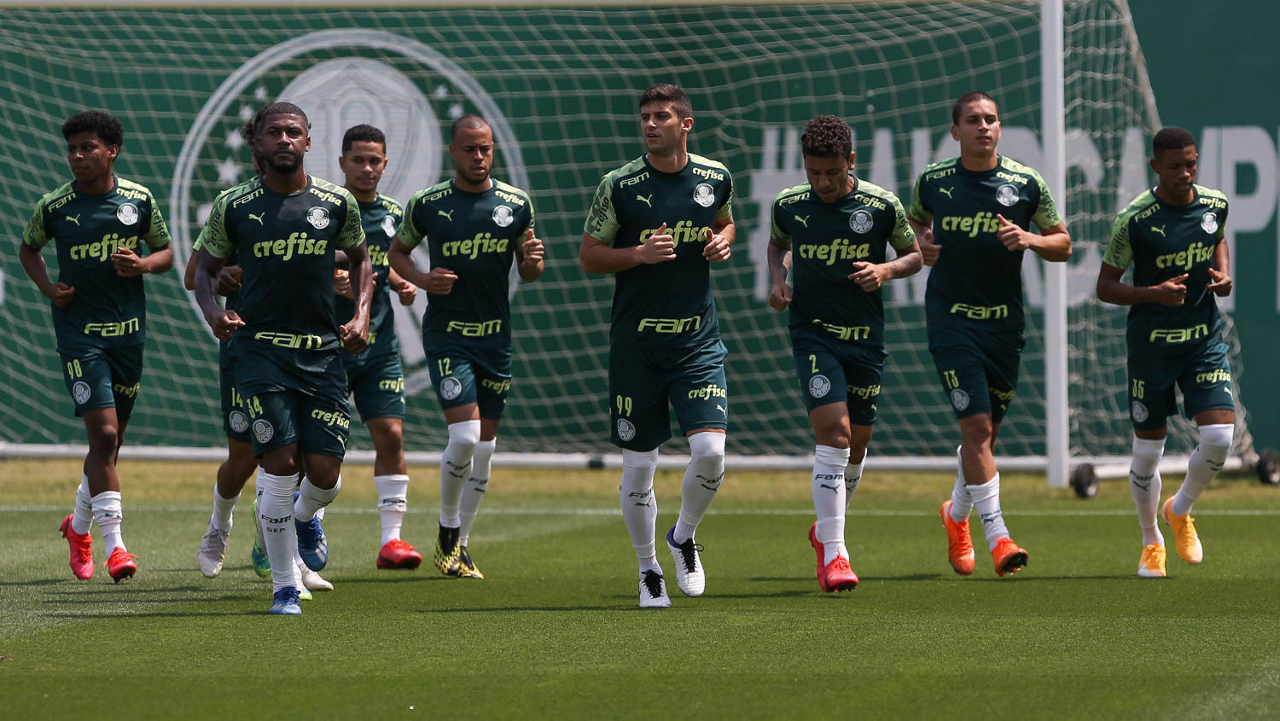Os jogadores da SE Palmeiras, durante treinamento, na Academia de Futebol. (Foto: Cesar Greco)