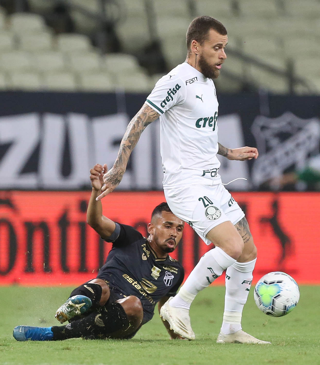 O jogador Patrick de Paula, da SE Palmeiras, em jogo contra a equipe do Ceará SC, durante partida válida pelas quartas de final (volta), da Copa do Brasil, na Arena Castelão. (Foto: Cesar Greco)
