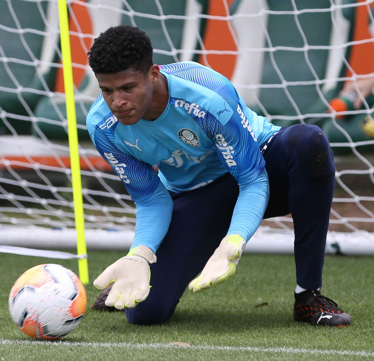 O goleiro Mateus, da SE Palmeiras, durante treinamento, na Academia de Futebol. (Foto: Cesar Greco)