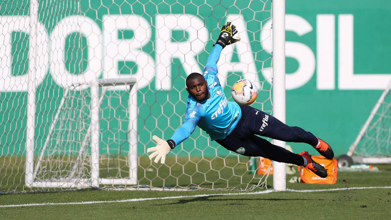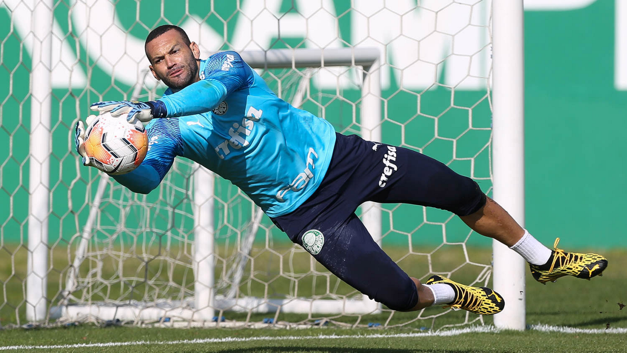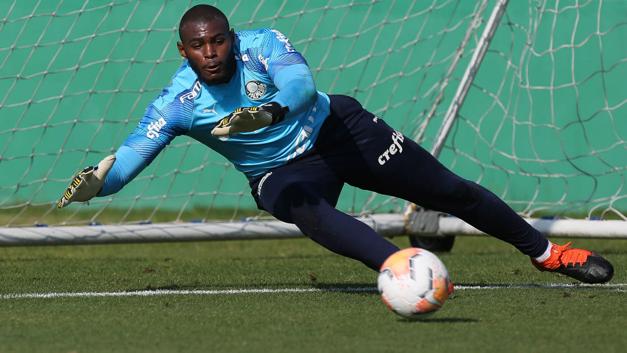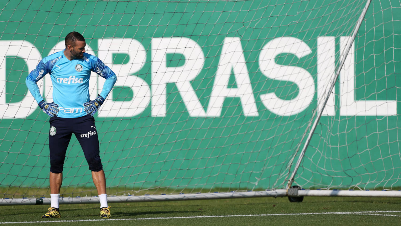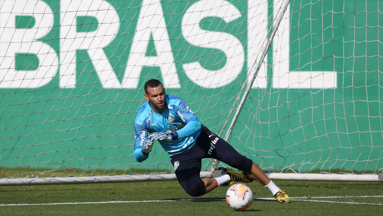 O goleiro Weverton, da SE Palmeiras, durante treinamento, na Academia de Futebol. (Foto: Cesar Greco)