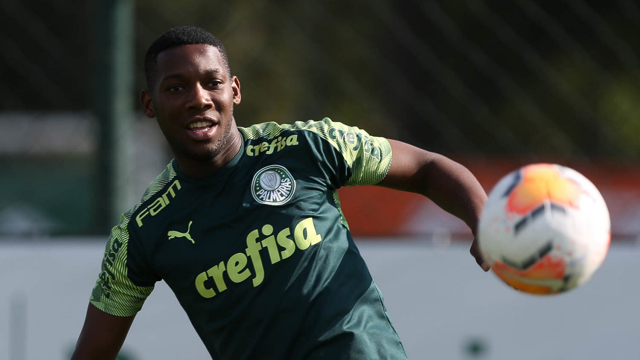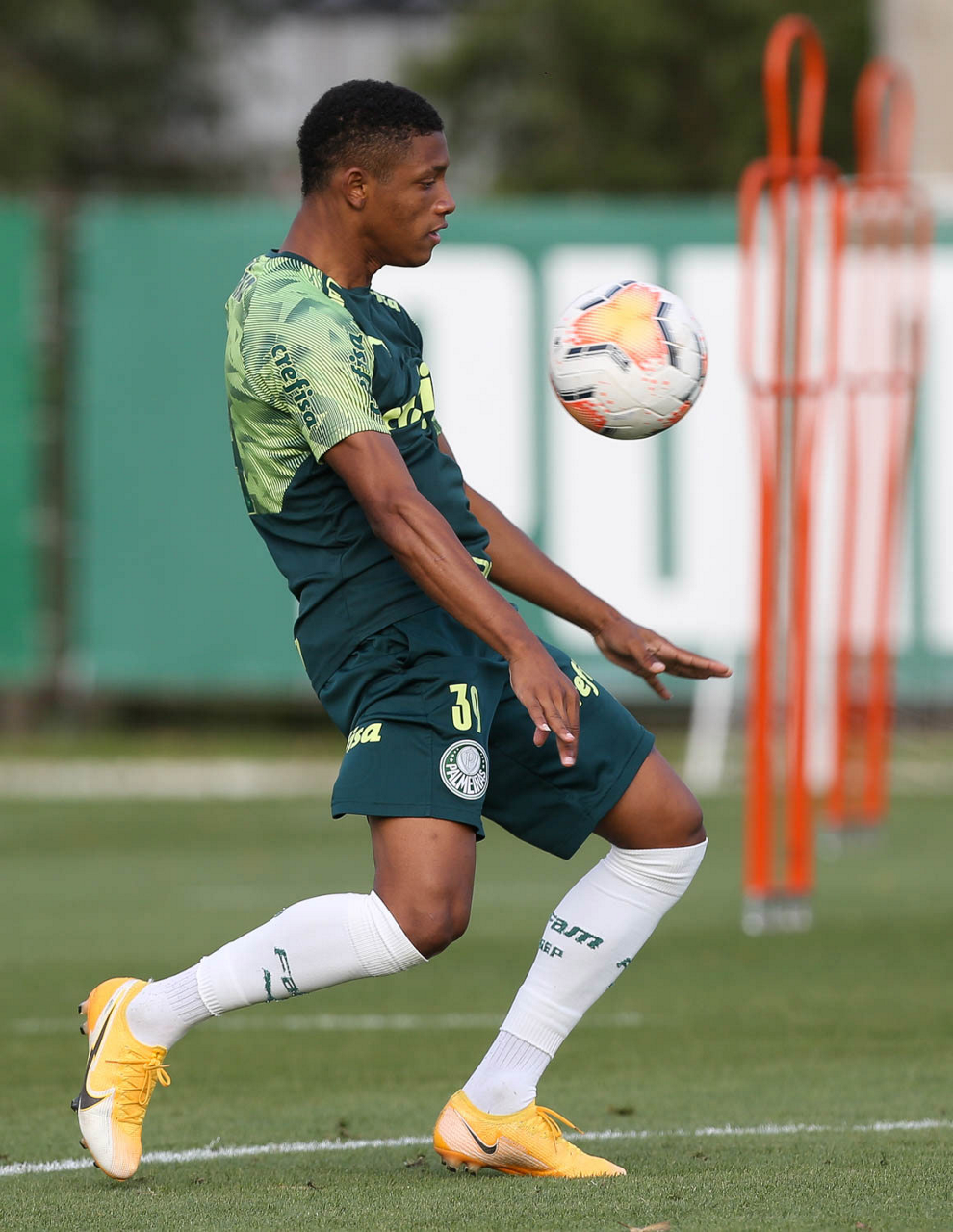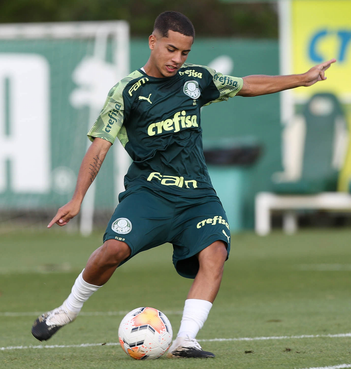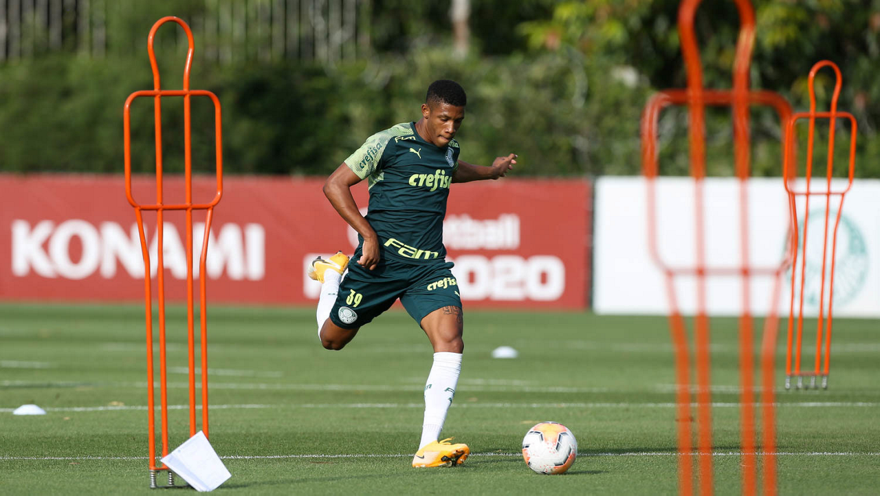 O jogador Gabriel Menino, da SE Palmeiras, durante treinamento, na Academia de Futebol. (Foto: Cesar Greco)
