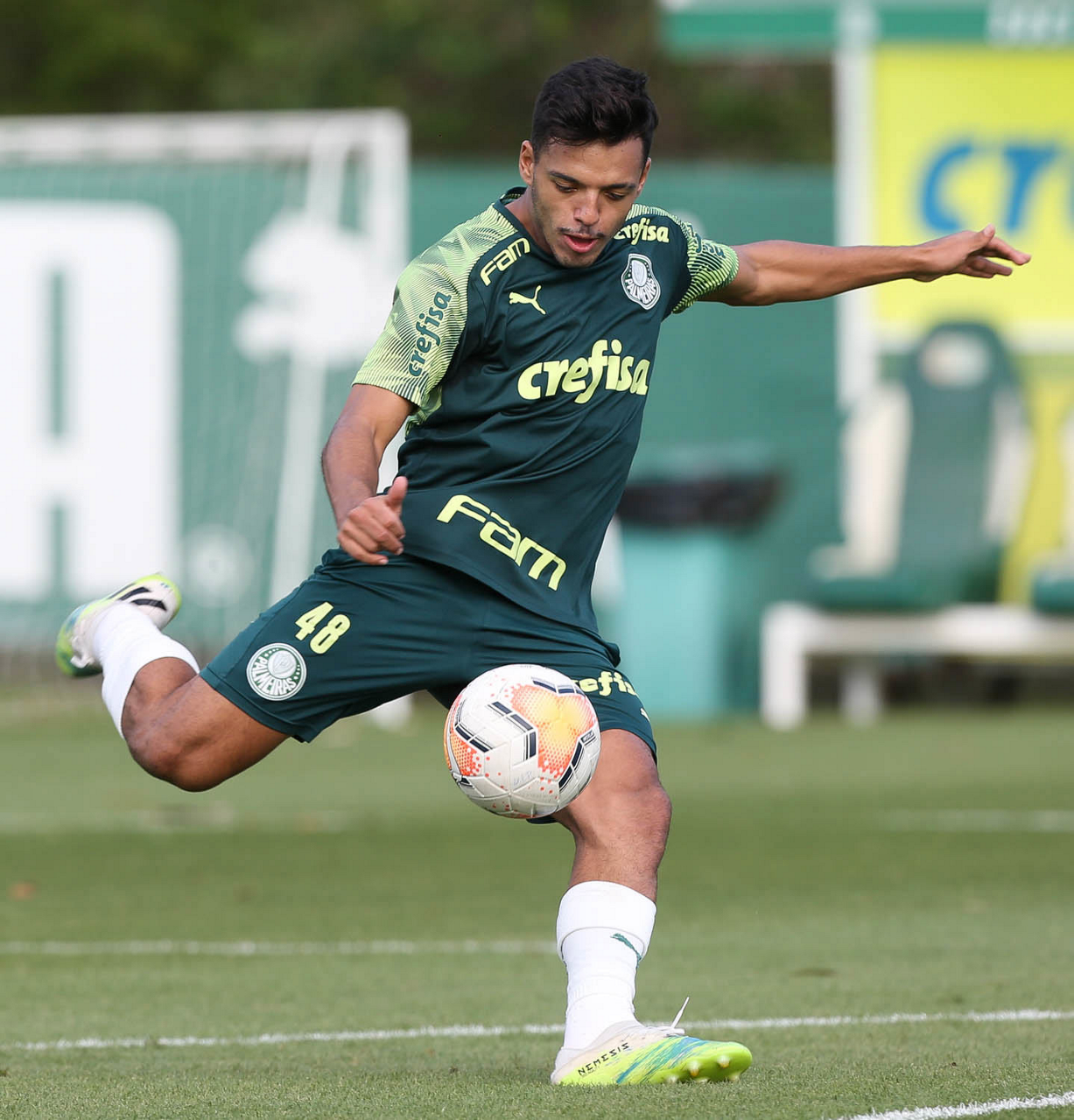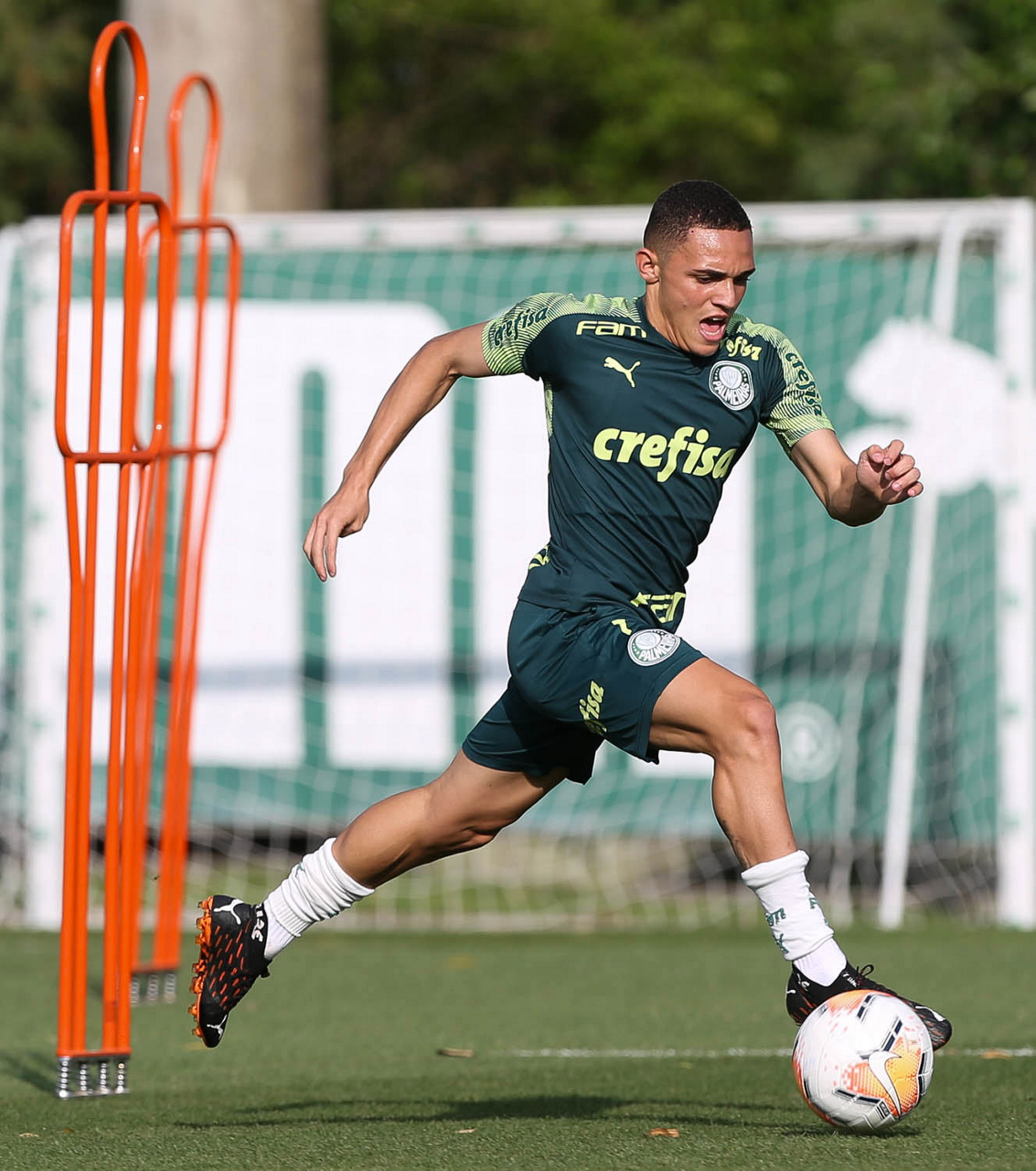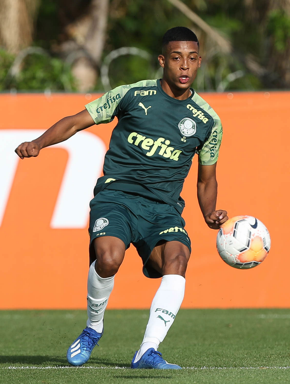 O jogador Gabriel Menino, da SE Palmeiras, durante treinamento, na Academia de Futebol. (Foto: Cesar Greco)
