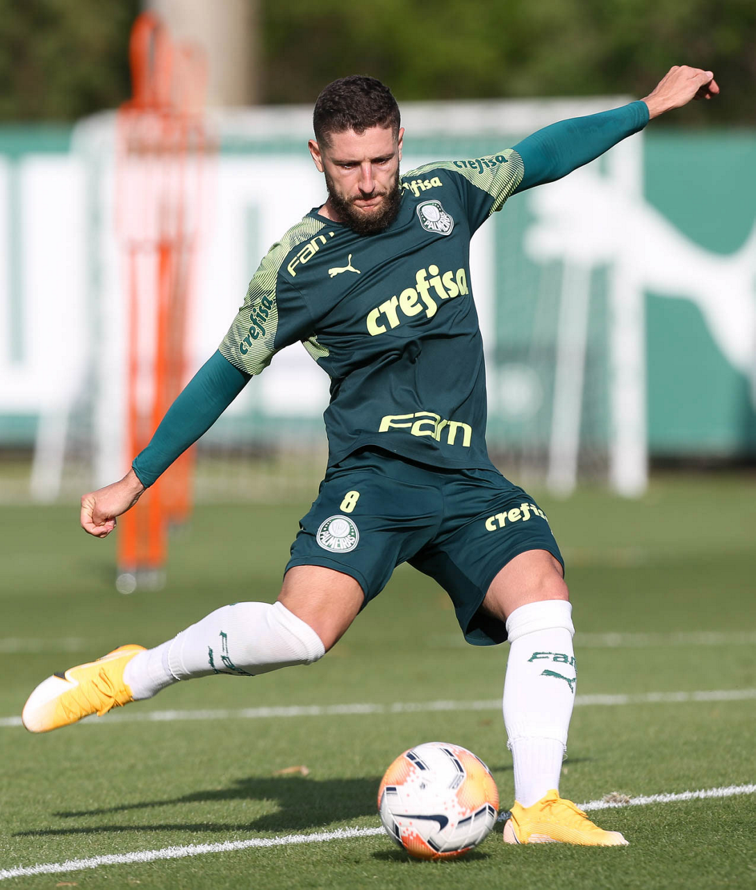 O jogador Fabricio, da SE Palmeiras, durante treinamento, na Academia de Futebol. (Foto: Cesar Greco)