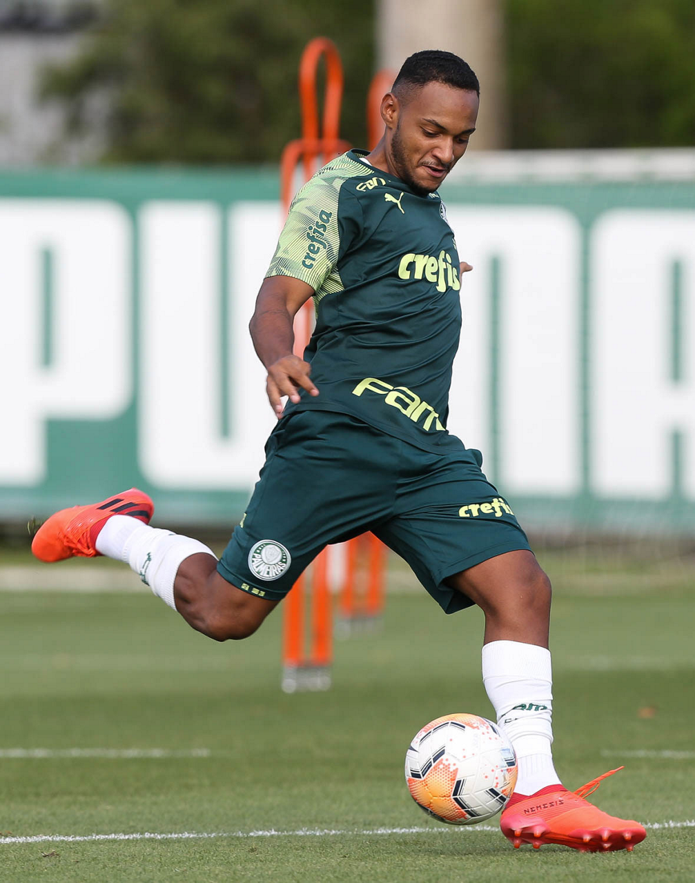 O jogador Vitinho, da SE Palmeiras, durante treinamento, na Academia de Futebol. (Foto: Cesar Greco)