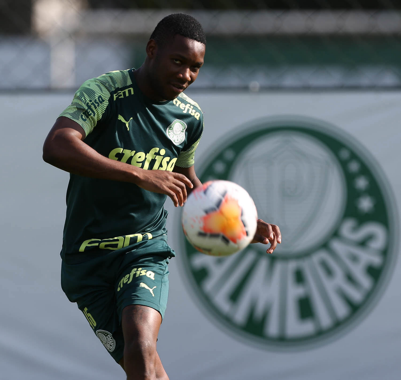 O jogador Emerson Santos, da SE Palmeiras, durante treinamento, na Academia de Futebol. (Foto: Cesar Greco)