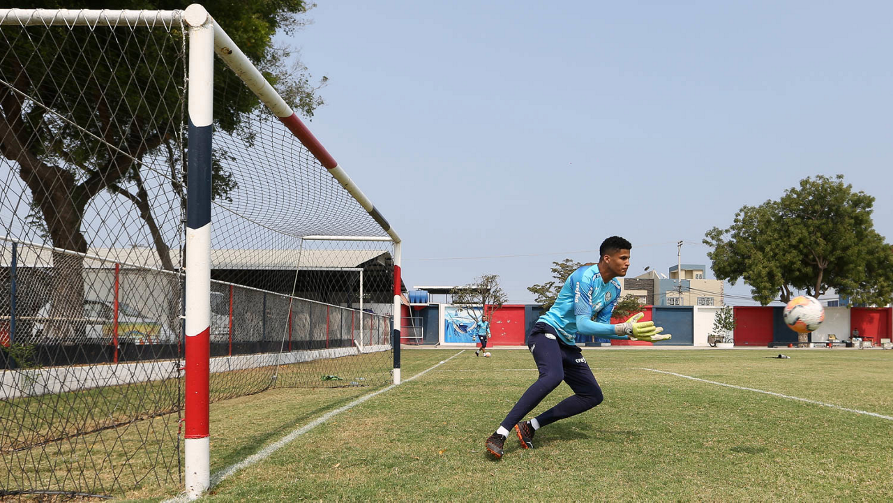 O goleiro Mateus, da SE Palmeiras, durante treinamento, no estádio do Elegole, em Manta, no Equador. (Foto: Cesar Greco)