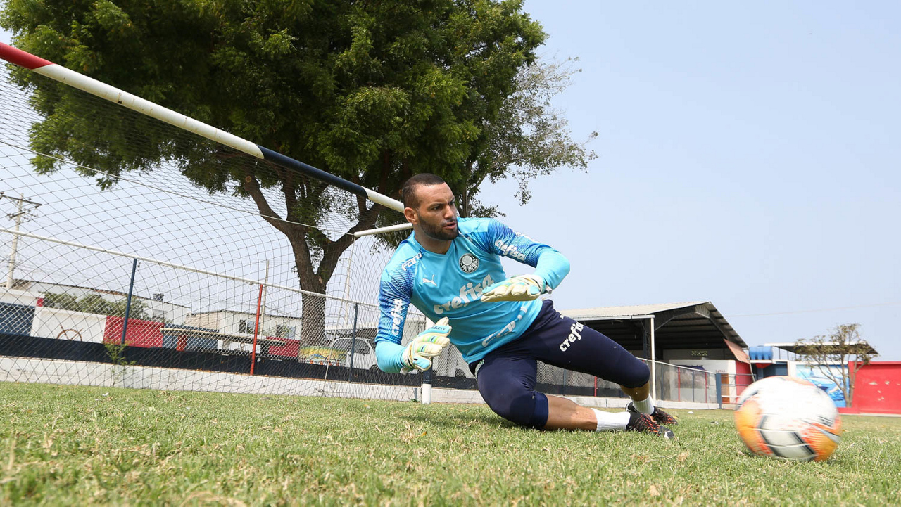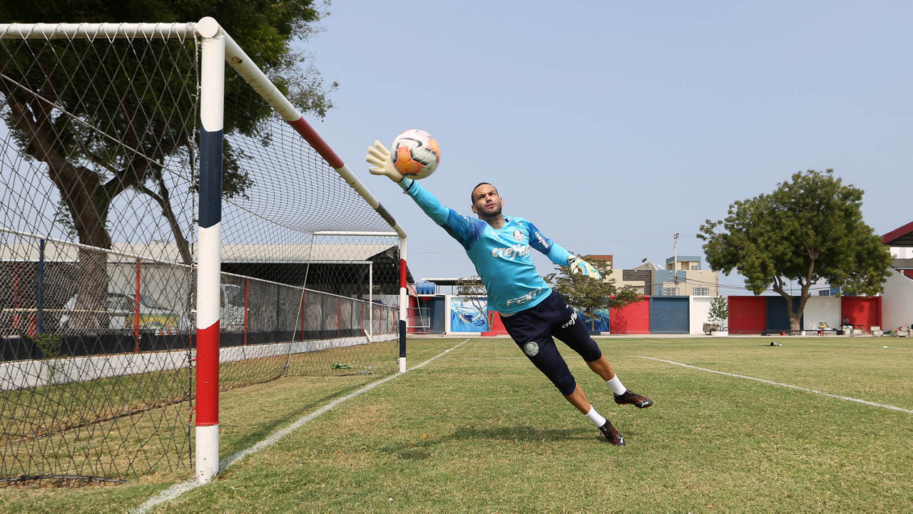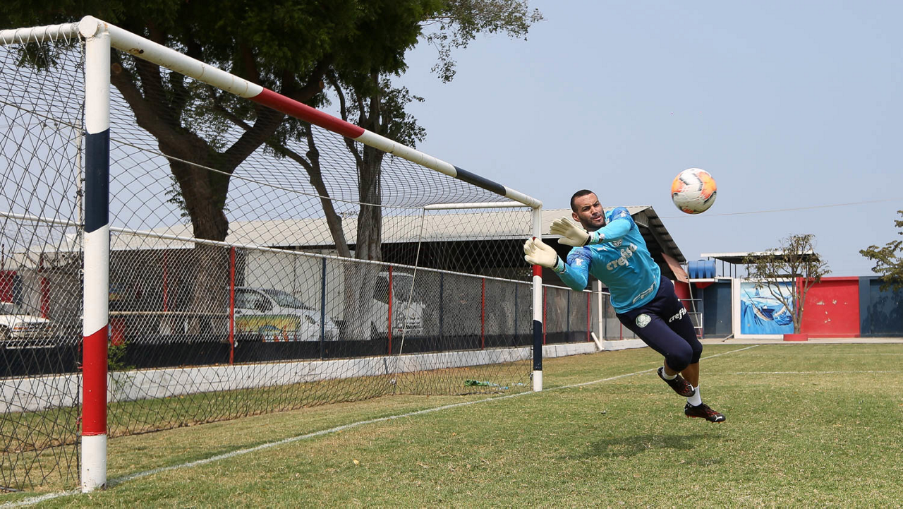 O goleiro Weverton, da SE Palmeiras, durante treinamento, no estádio do Elegole, em Manta, no Equador. (Foto: Cesar Greco)