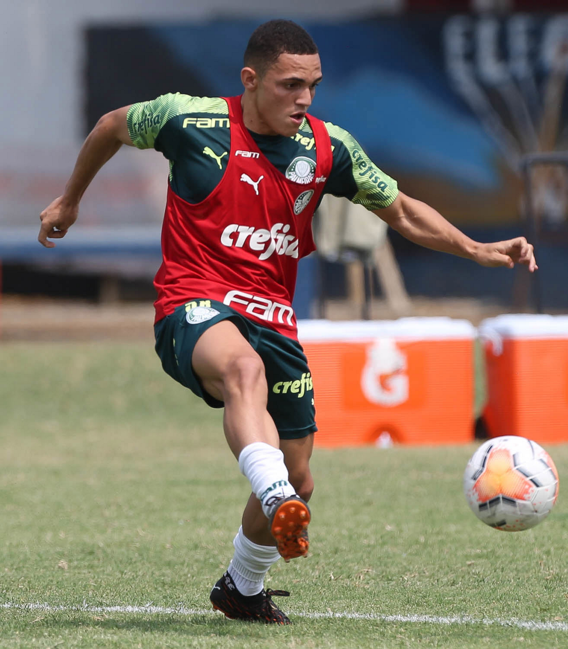O jogador Vitinho, da SE Palmeiras, durante treinamento, no estádio do Elegole, em Manta, no Equador. (Foto: Cesar Greco)