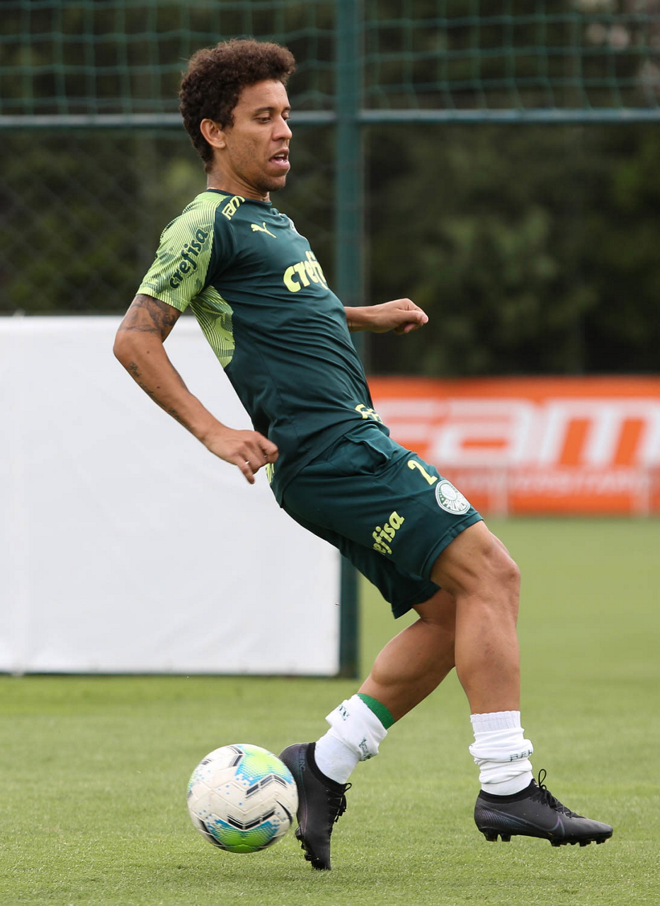 O jogador Raphael Veiga, da SE Palmeiras, durante treinamento, na Academia de Futebol. (Foto: Cesar Greco)