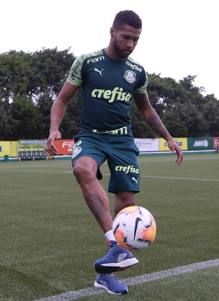 O jogador Gustavo Gómez, da SE Palmeiras, durante treinamento, na Academia de Futebol. (Foto: Cesar Greco)