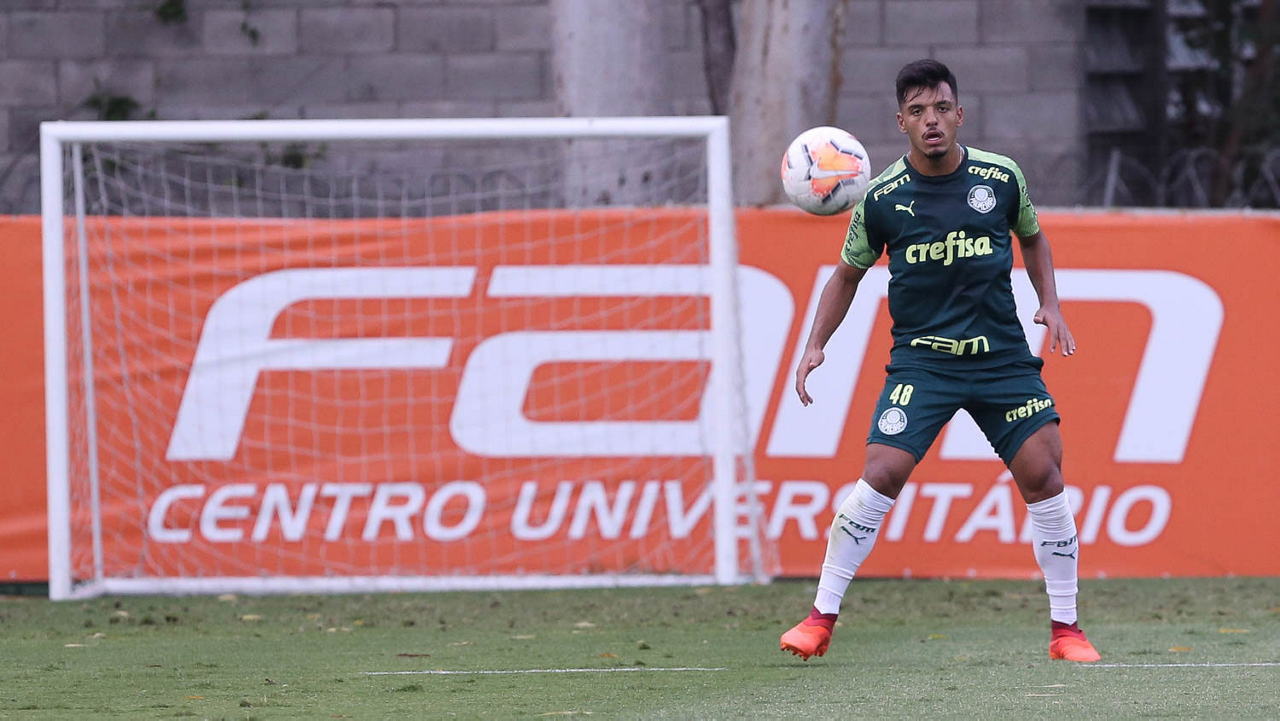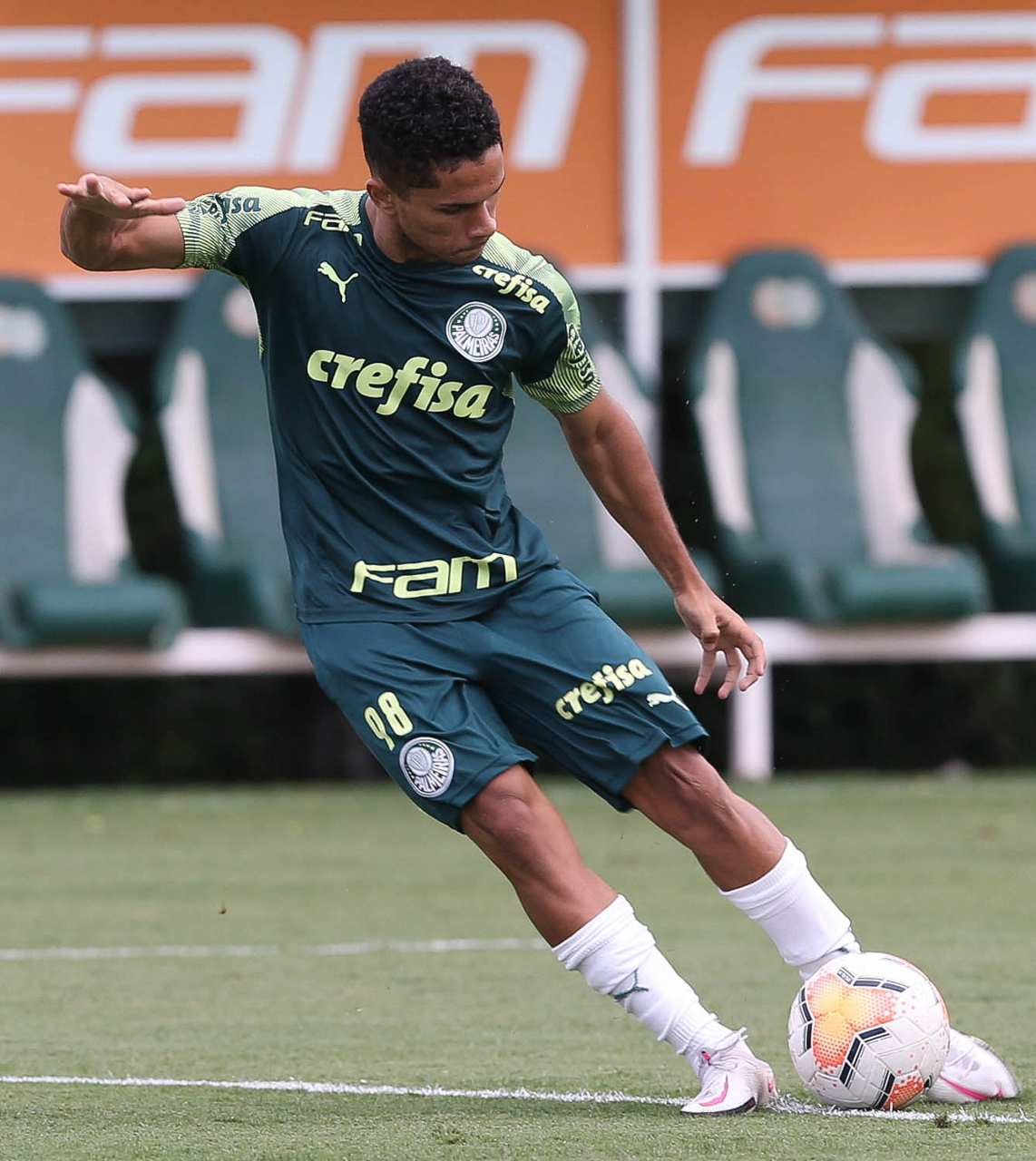 O jogador Gabriel Menino, da SE Palmeiras, durante treinamento, na Academia de Futebol. (Foto: Cesar Greco)