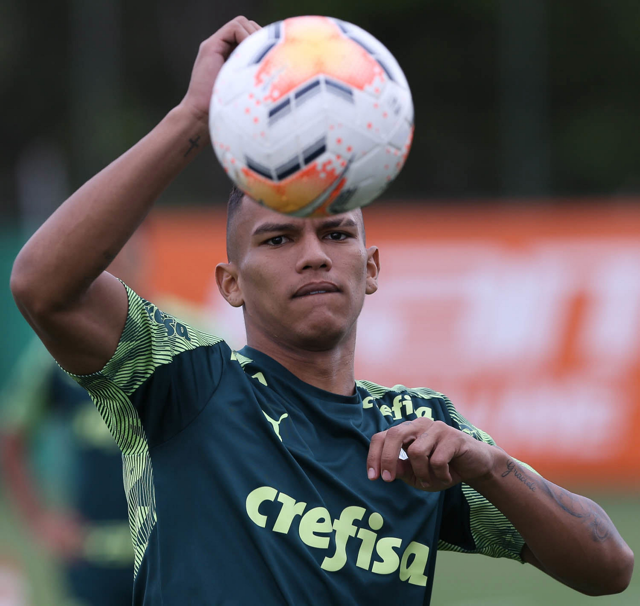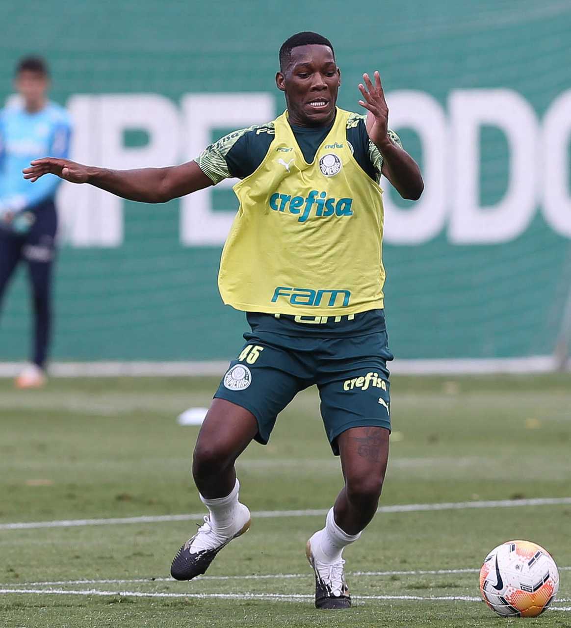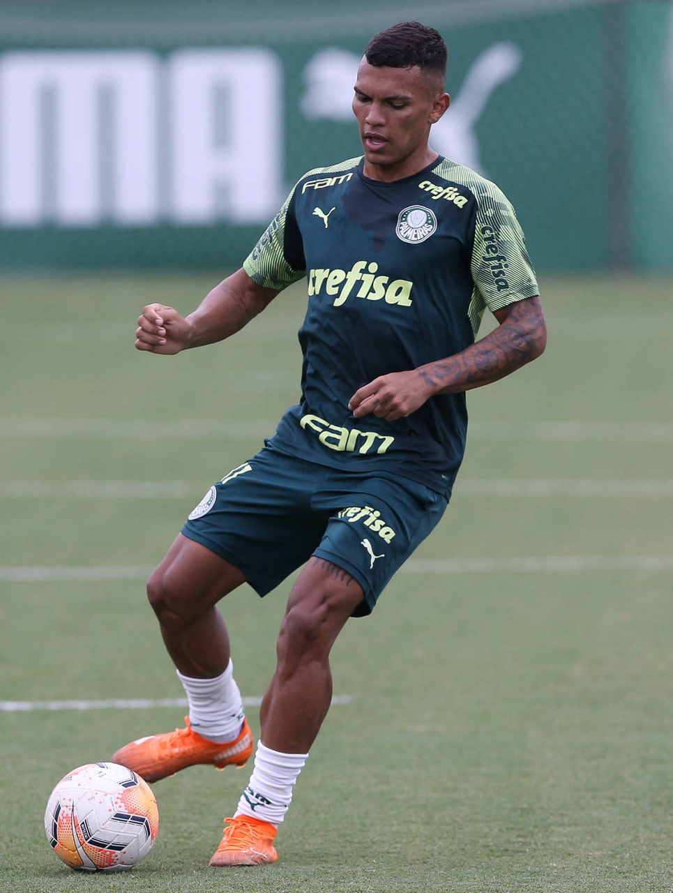 O jogador Emerson Santos, da SE Palmeiras, durante treinamento, na Academia de Futebol. (Foto: Cesar Greco)
