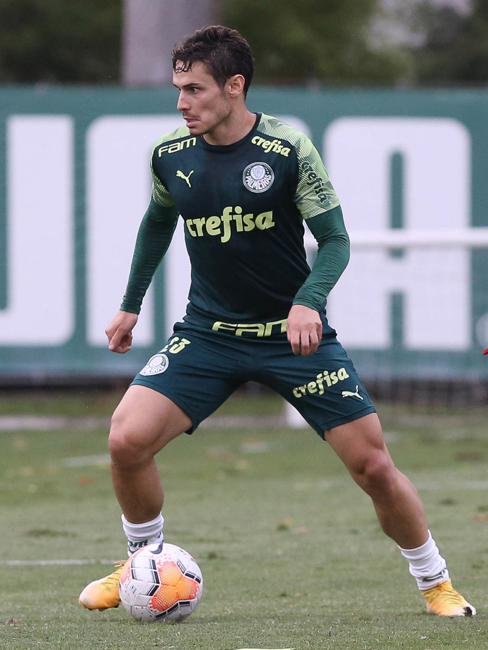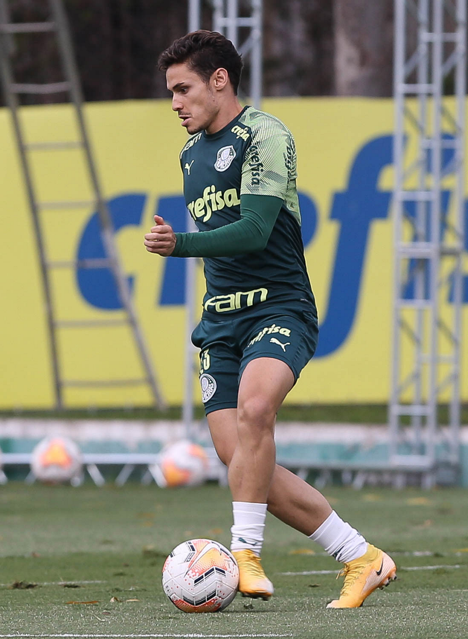 O jogador Raphael Veiga, da SE Palmeiras, durante treinamento, na Academia de Futebol. (Foto: Cesar Greco)