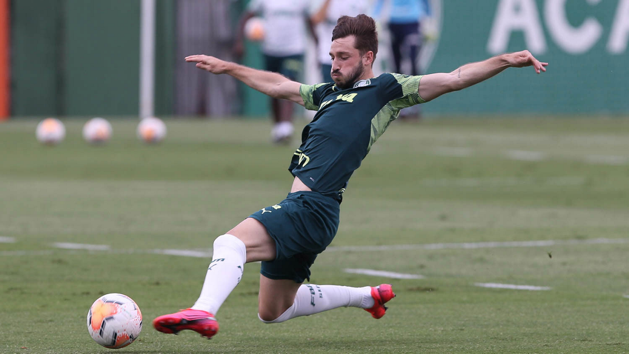 O jogador Gustavo Scarpa, da SE Palmeiras, durante treinamento, na Academia de Futebol. (Foto: Cesar Greco)