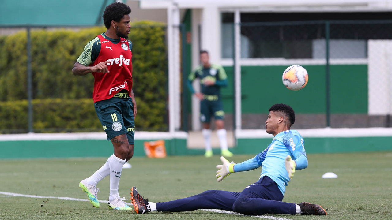 O jogador Luan, da SE Palmeiras, durante treinamento, na Academia de Futebol. (Foto: Cesar Greco)
