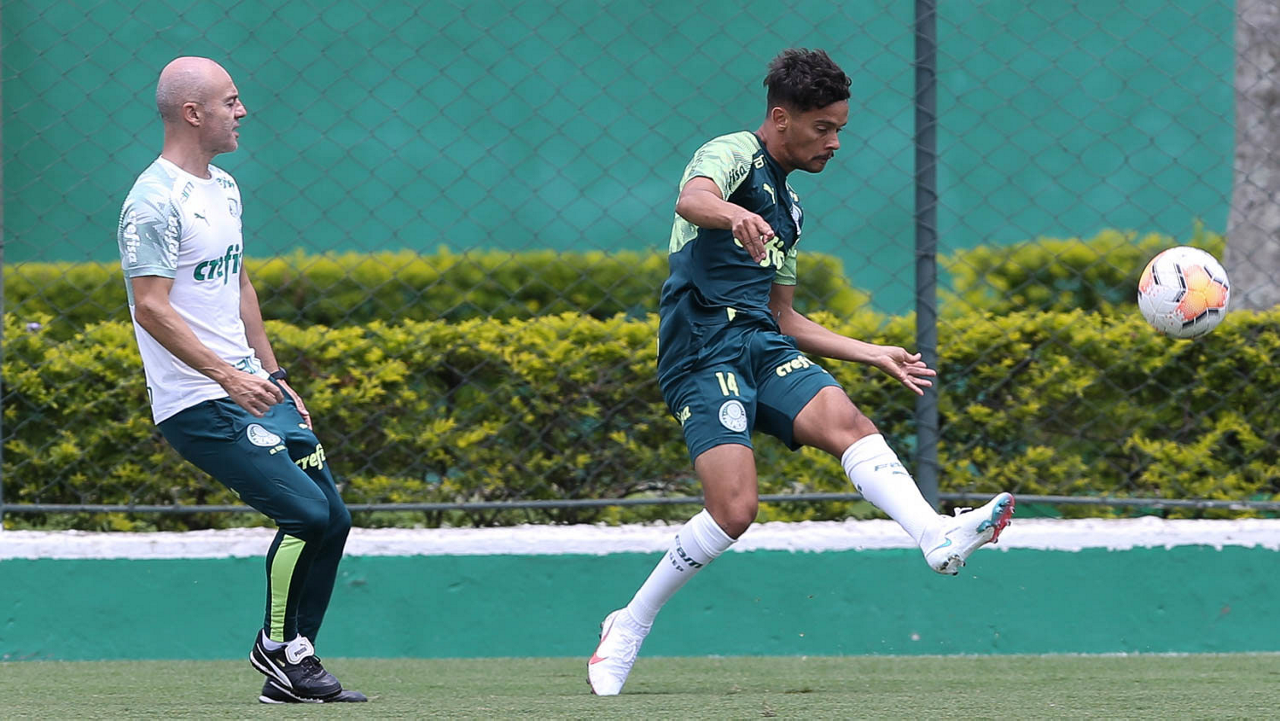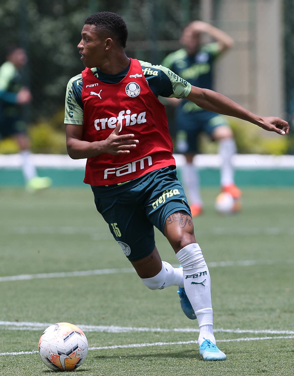 O jogador Gabriel Menino, da SE Palmeiras, durante treinamento, na Academia de Futebol. (Foto: Cesar Greco)