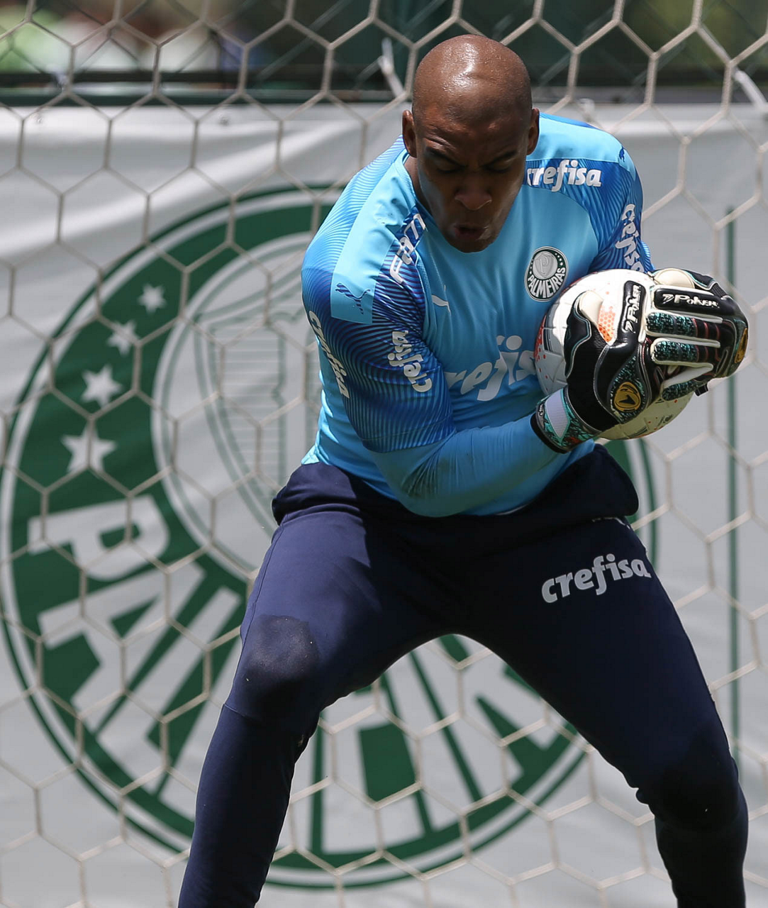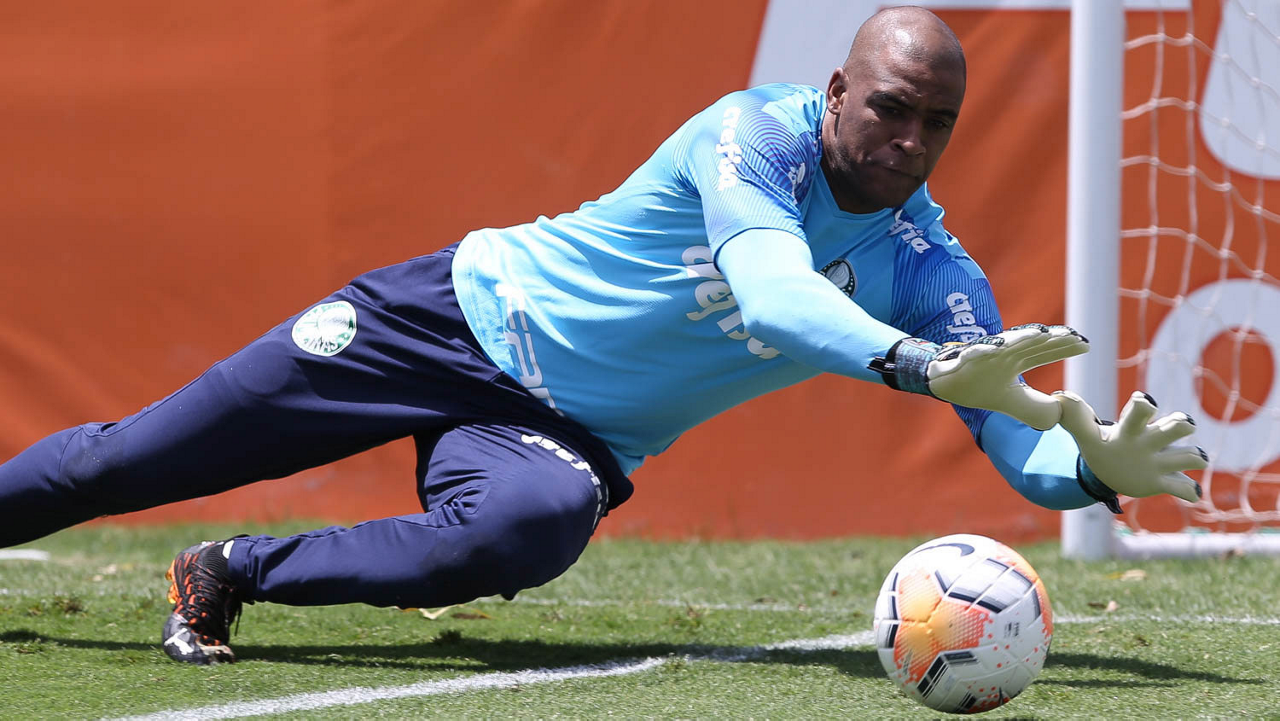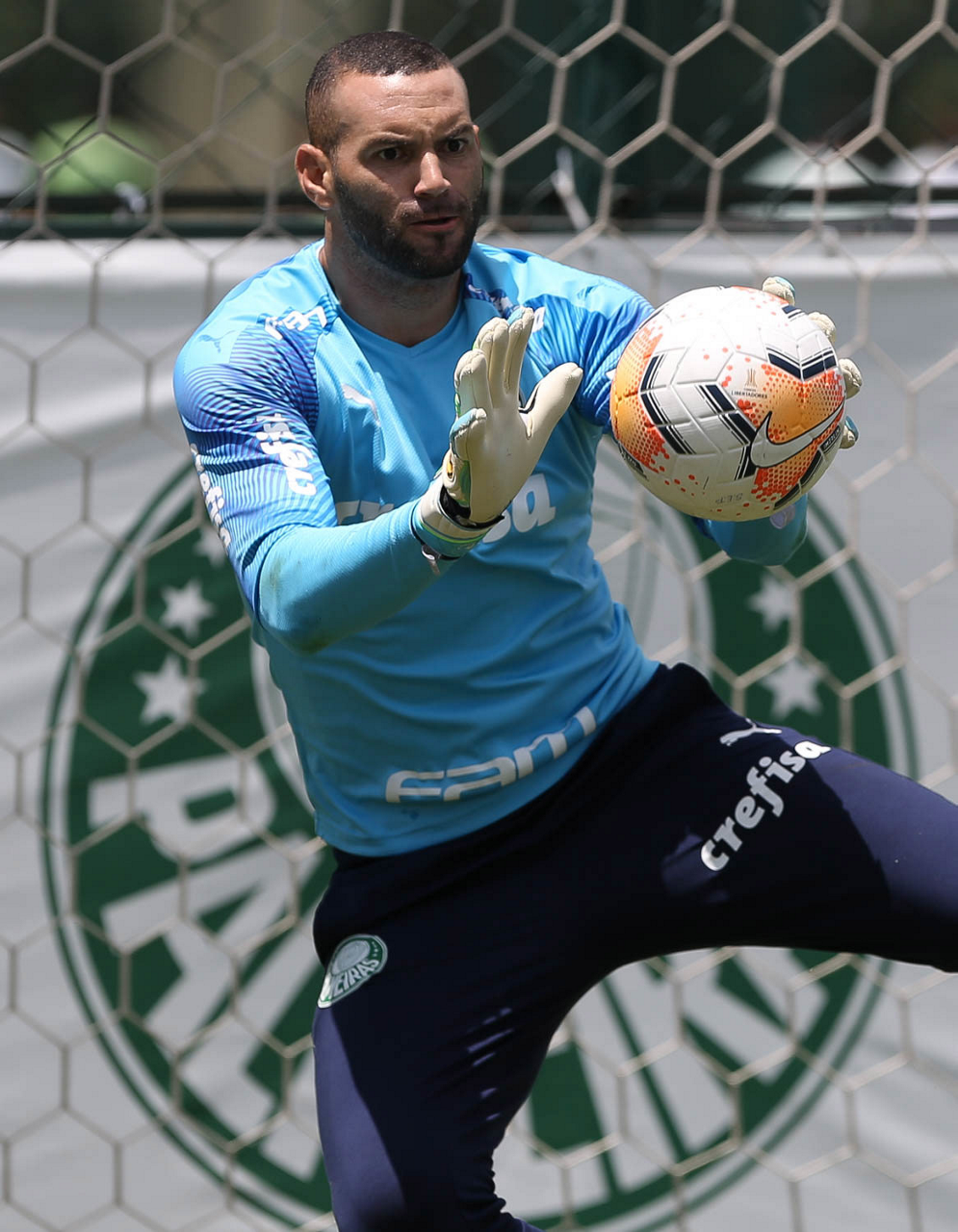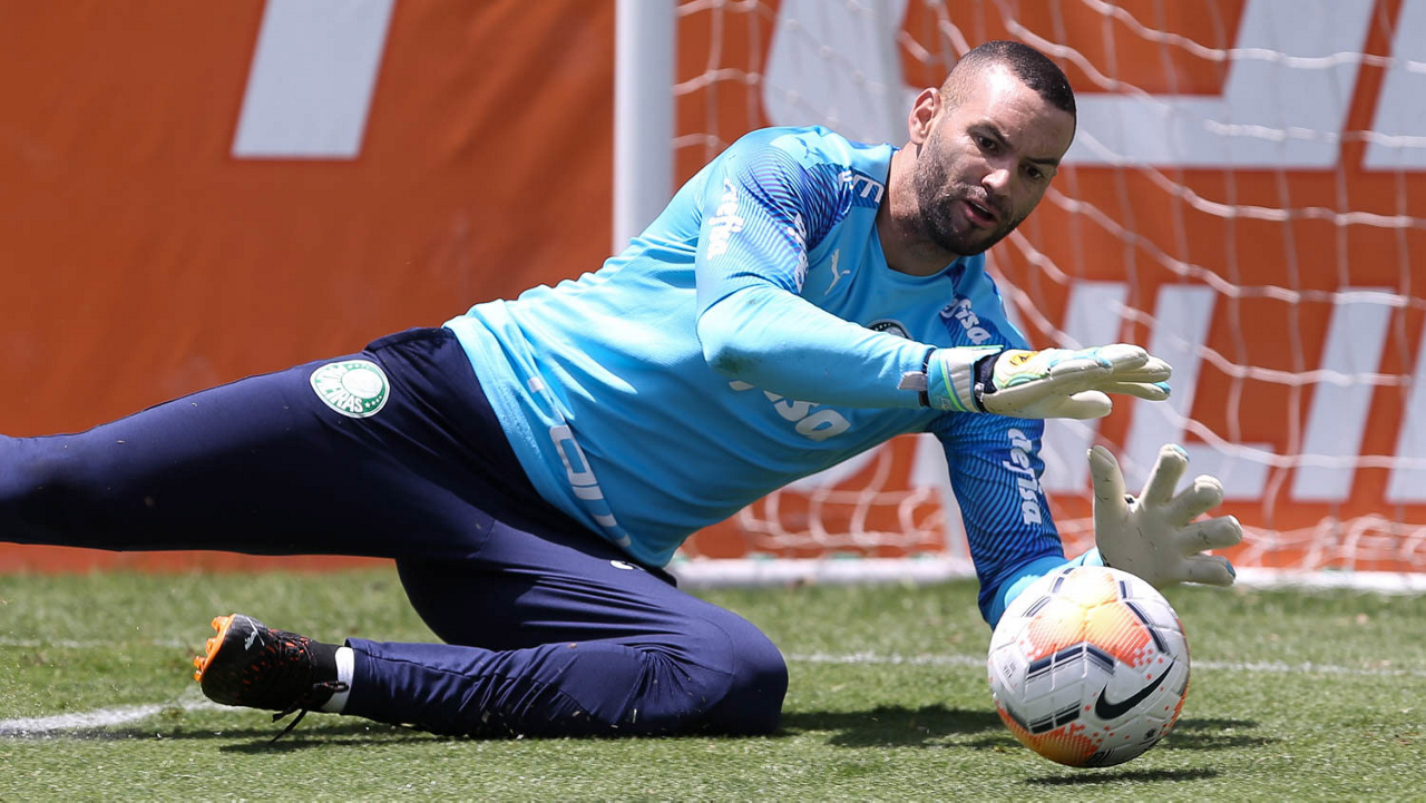 O goleiro Weverton, da SE Palmeiras, durante treinamento, na Academia de Futebol. (Foto: Cesar Greco)