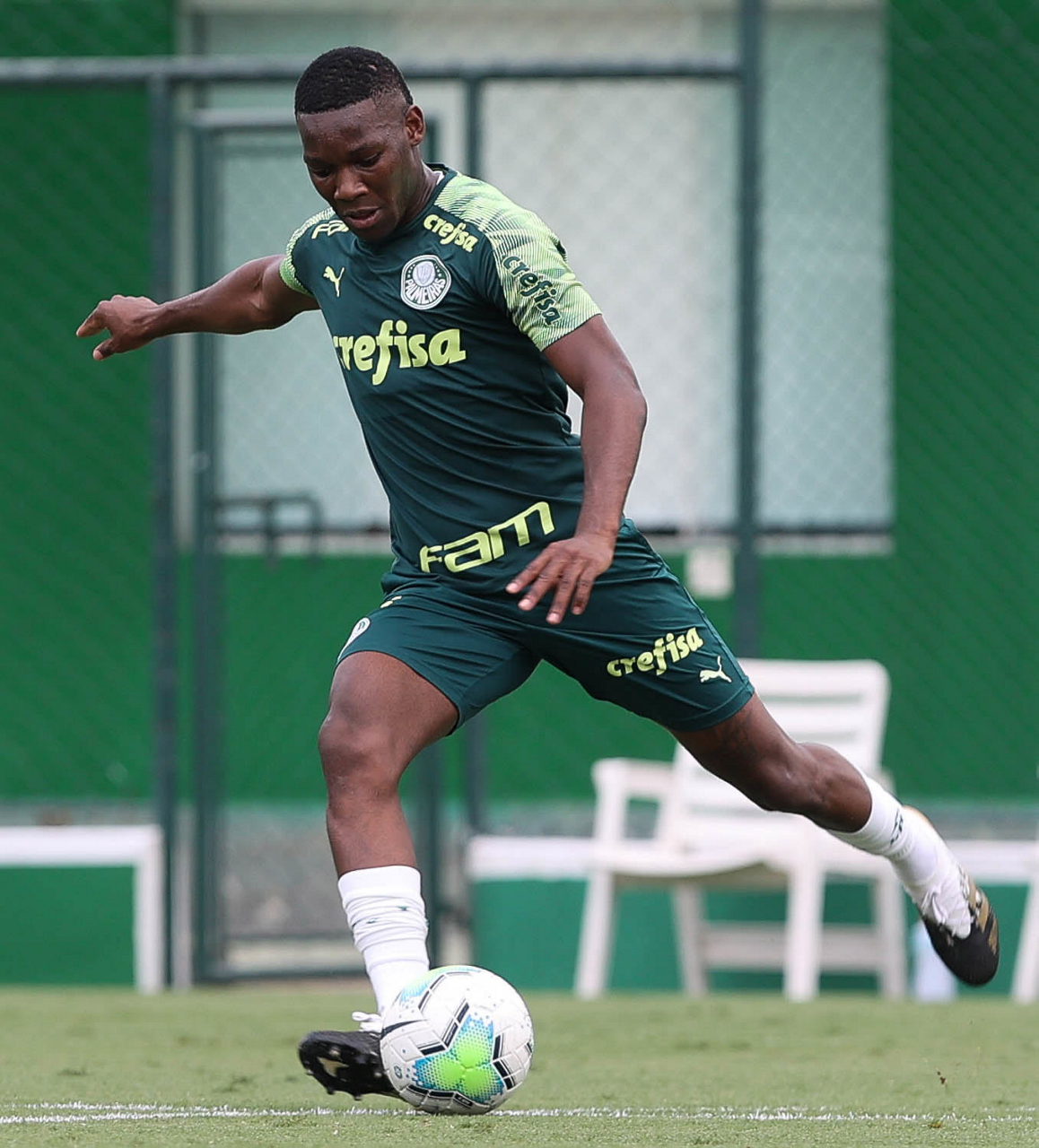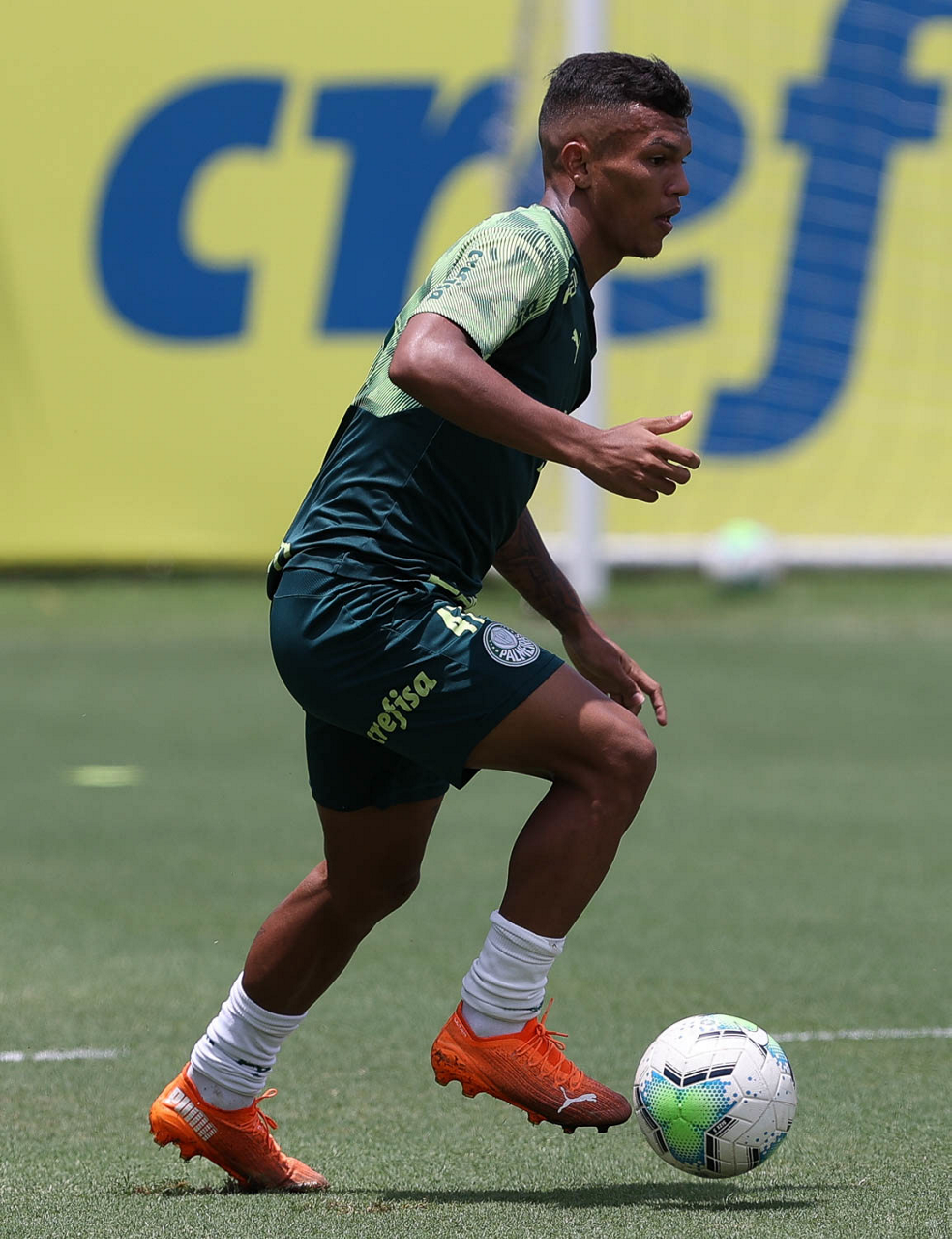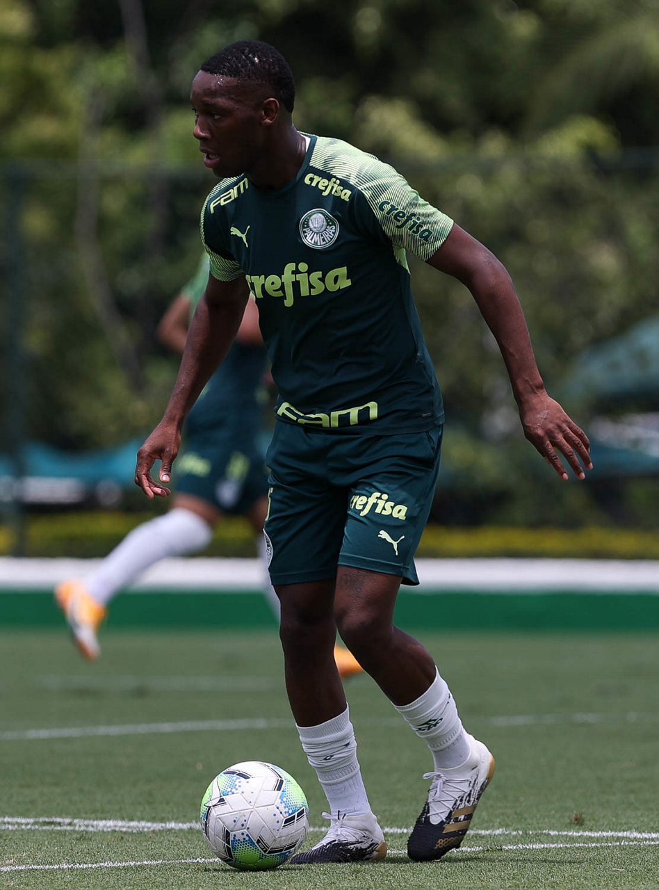O jogador Gabriel Veron, da SE Palmeiras, durante treinamento, na Academia de Futebol. (Foto: Cesar Greco)