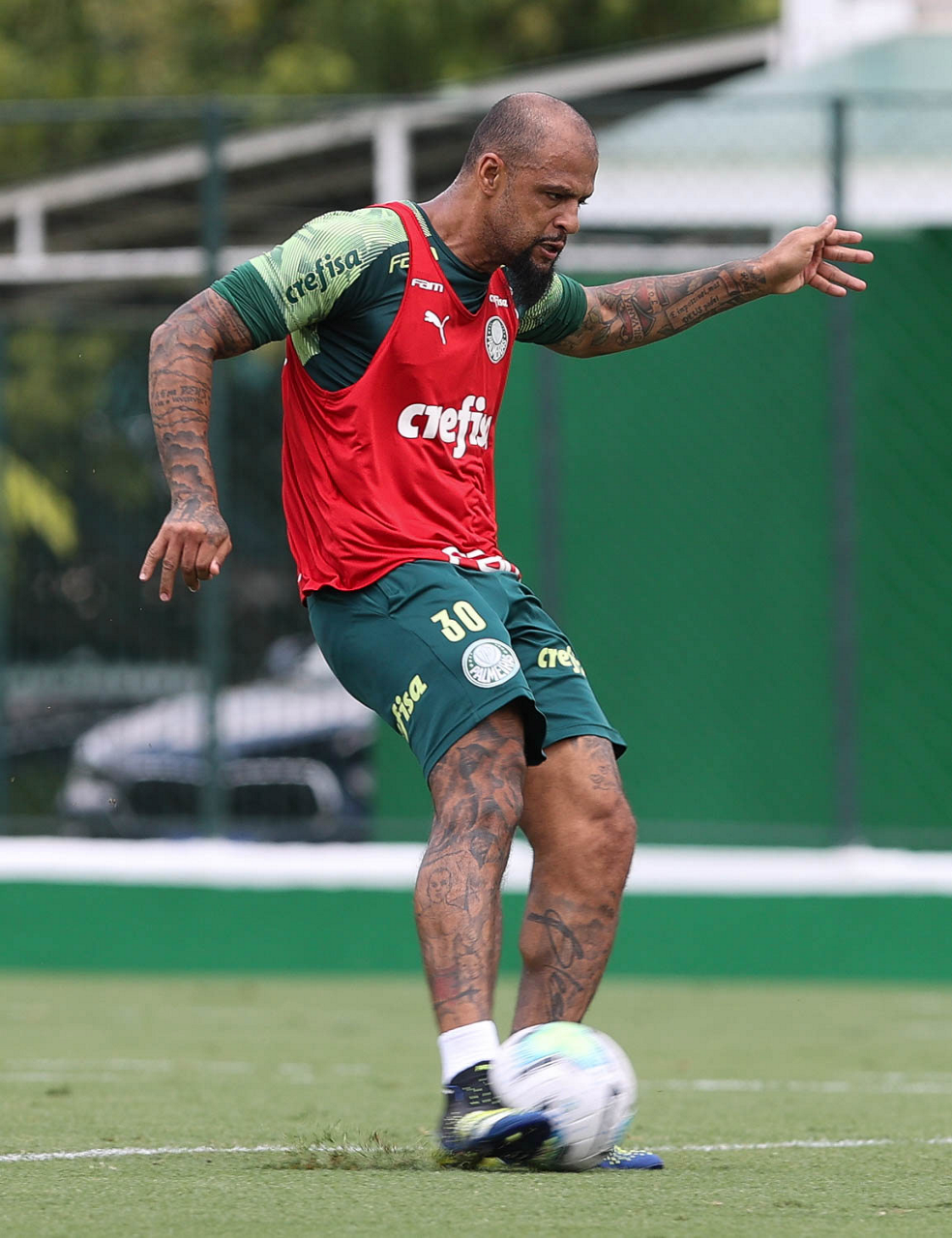 O jogador Felipe Melo, da SE Palmeiras, durante treinamento, na Academia de Futebol. (Foto: Cesar Greco)
