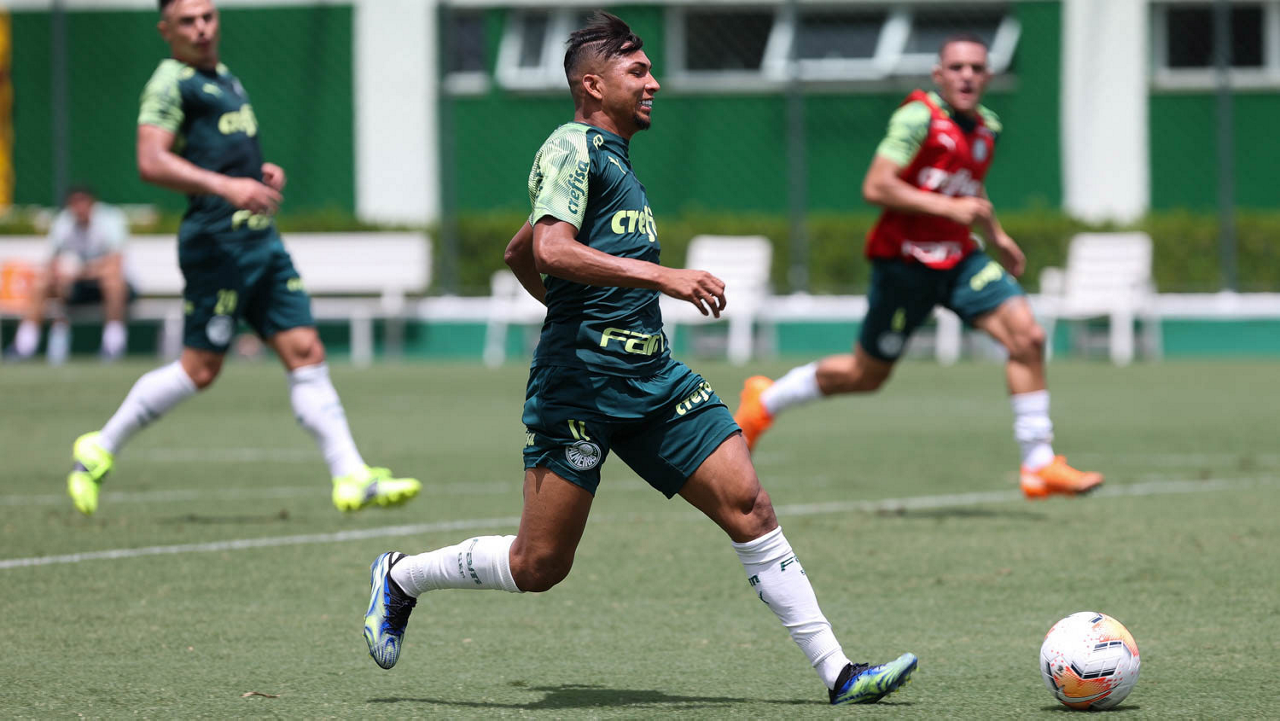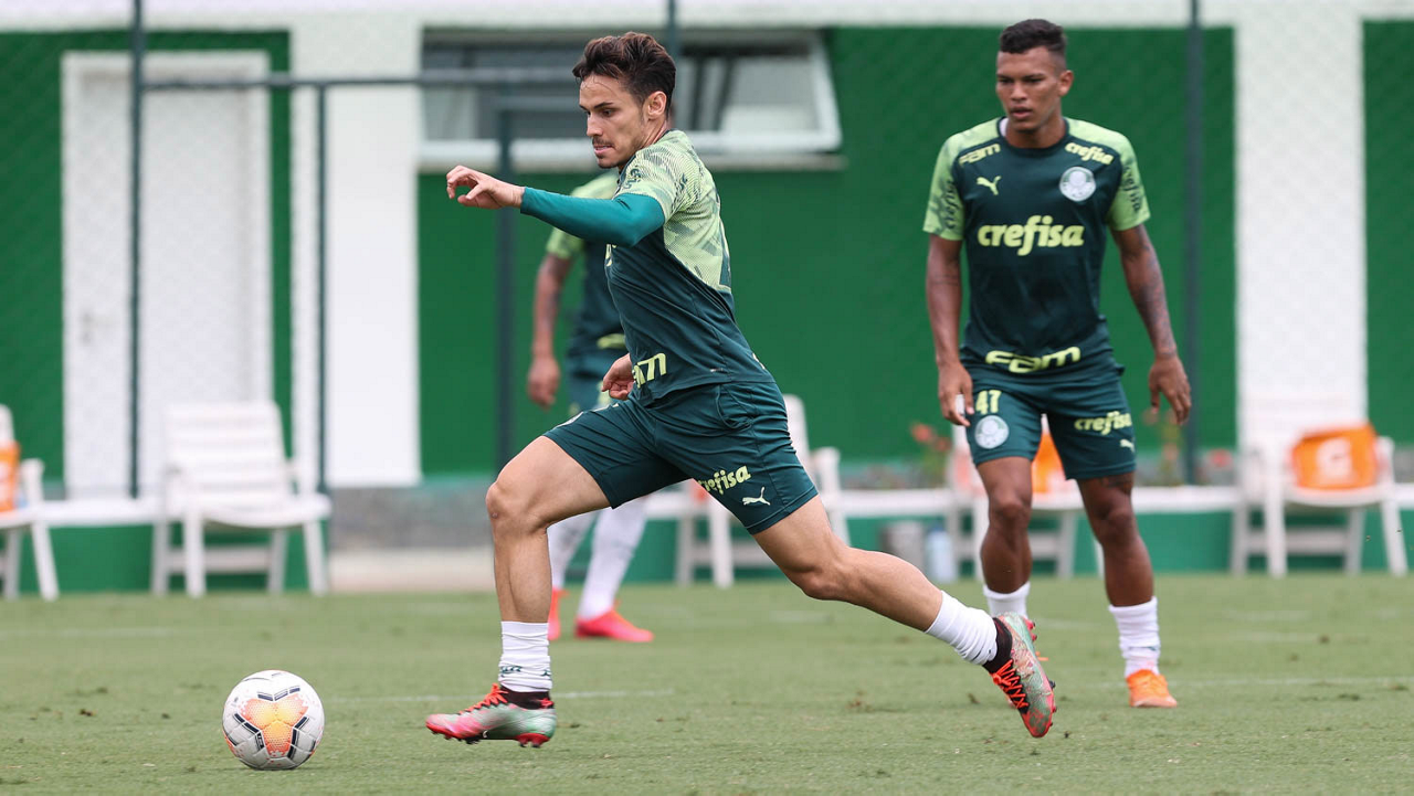 O jogador Raphael Veiga, da SE Palmeiras, durante treinamento, na Academia de Futebol. (Foto: Cesar Greco)