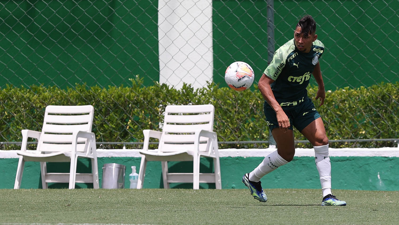 O jogador Gabriel Menino, da SE Palmeiras, durante treinamento, na Academia de Futebol. (Foto: Cesar Greco)