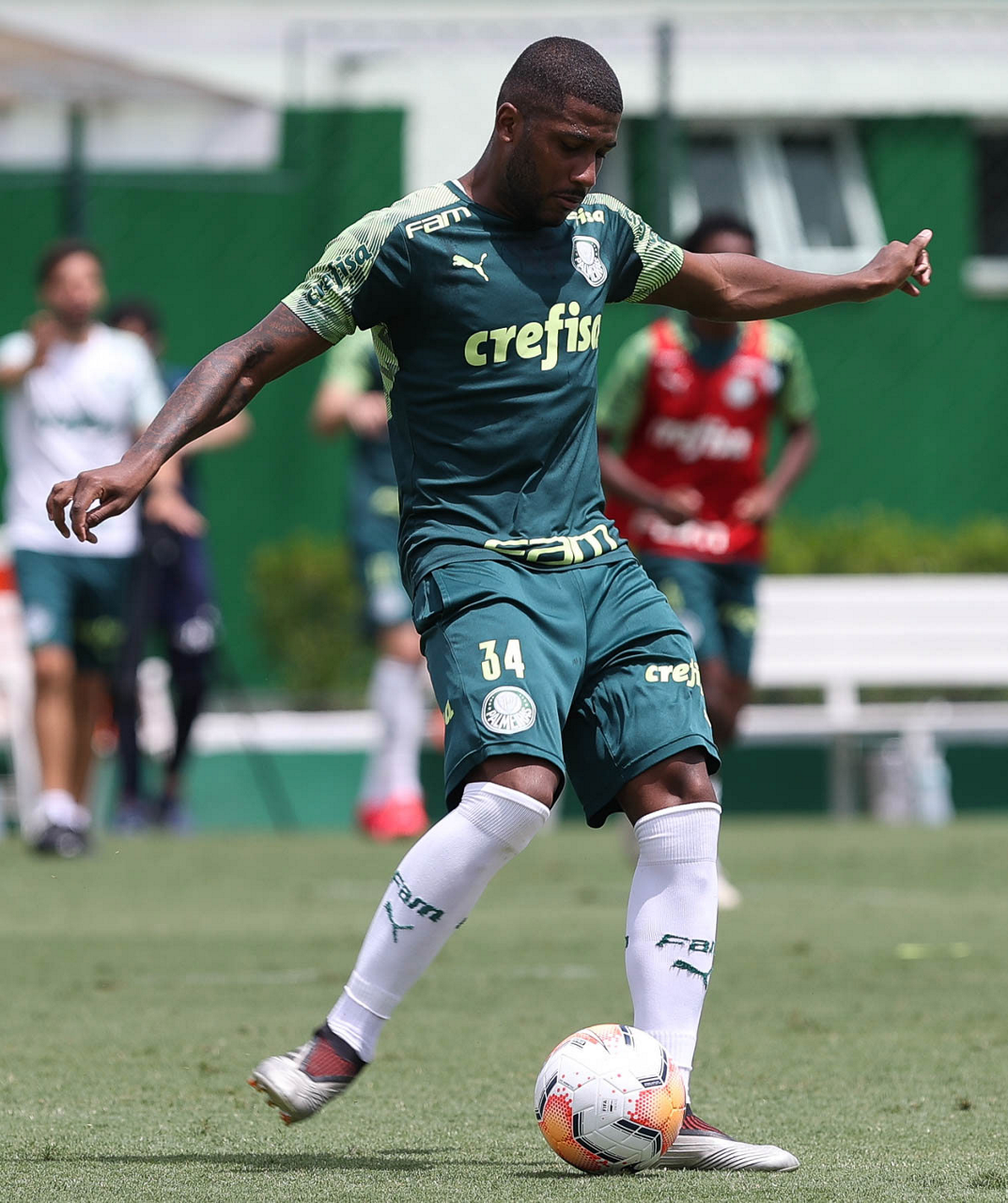 O jogador Emerson Santos, da SE Palmeiras, durante treinamento, na Academia de Futebol. (Foto: Cesar Greco)