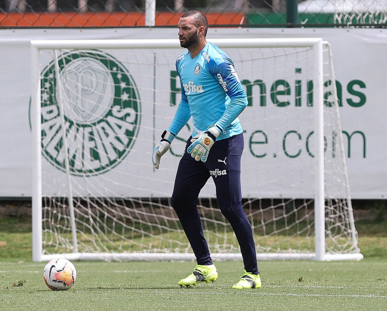 O goleiro Weverton, da SE Palmeiras, durante treinamento, na Academia de Futebol. (Foto: Cesar Greco)