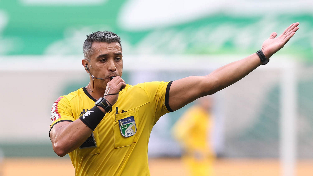 O árbitro Felipe Fernandes de Lima, do jogo entre as equipes da SE Palmeiras e Botafogo FR, durante partida válida pela trigésima quarta rodada, do Campeonato Brasileiro, Série A, na arena Allianz Parque. (Foto: Cesar Greco)