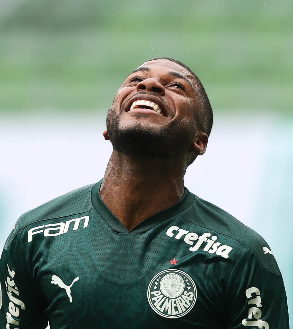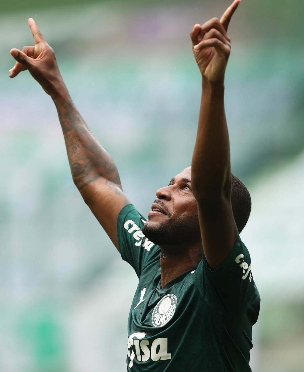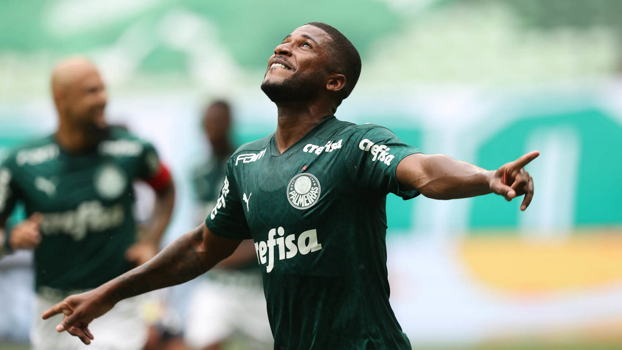 O jogador Emerson Santos, da SE Palmeiras, comemora seu gol contra a equipe do Botafogo FR, durante partida válida pela trigésima quarta rodada, do Campeonato Brasileiro, Série A, na arena Allianz Parque. (Foto: Cesar Greco)